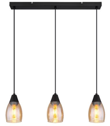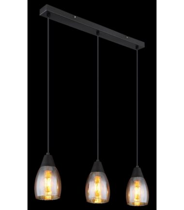 Ova sjajna viseća lampa iz REID serije inspiriše prelepim dizajnom. Tri crna kabla dužine 1,2 m, svaki sa grlom E27, vire iz plafonskog nosača dužine 55 cm. Opremljeni su oblikovanim staklenim abažurima boje dima (Ø 10 cm) i pružaju vam mogućnost da sami odredite boju svetlosti i osvetljenost do maksimalne snage od 15 vati. Zbog dugotrajnosti i uštede energije, preporučujemo LED sijalice.