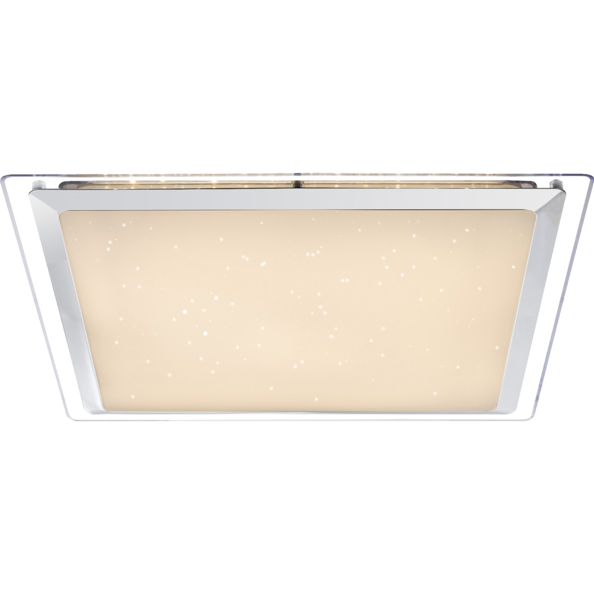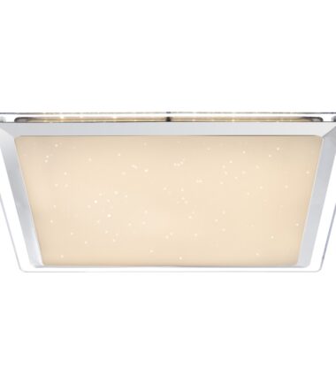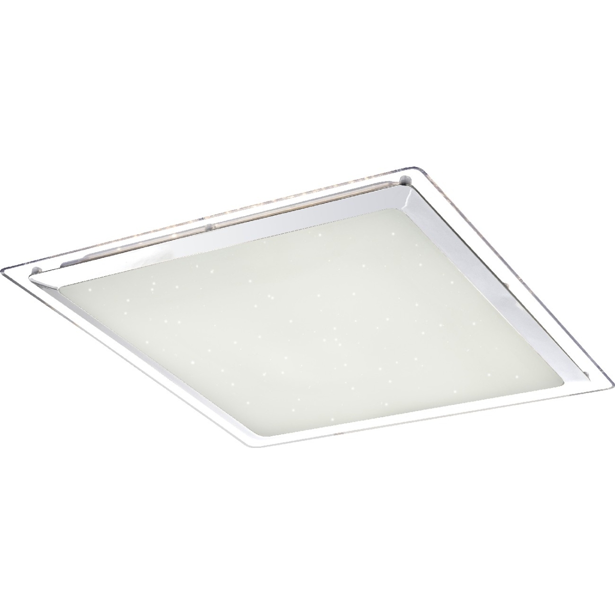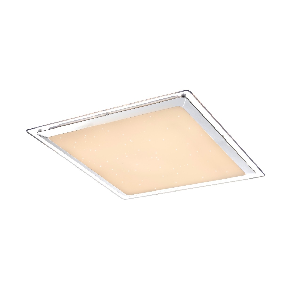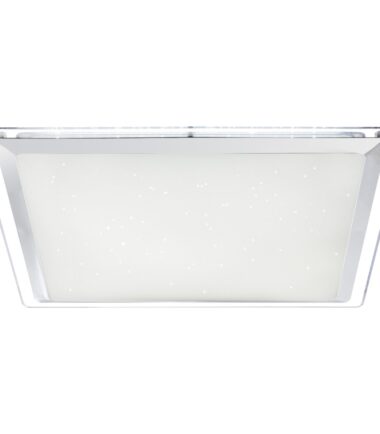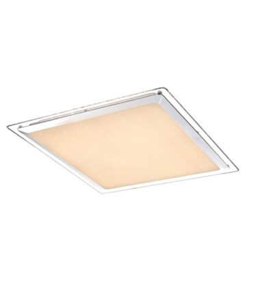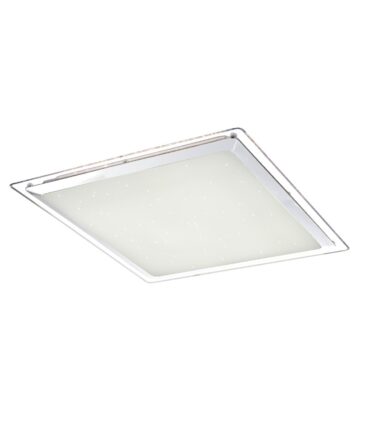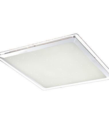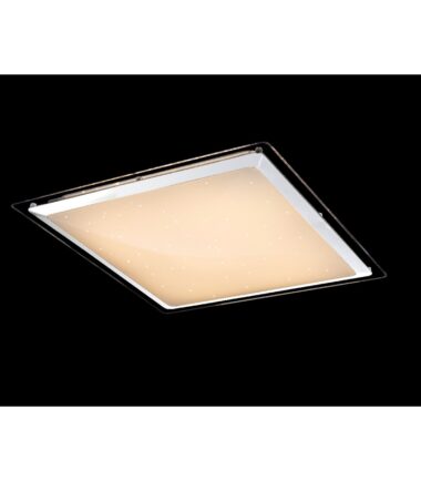 Ova kvadratna plafonska lampa od 44 cm, iz serije RENA, je glamurozna i moderna lampa koja se savršeno može integrisati u sve prostorije. Napravljena od belog metala i opalne plastike, ova unutrašnja lampa izgleda veoma elegantno. Pored toga, beloj plastici je dat kristalni efekat. Standardni LED od 30W emituje 1800 lumena jake svetlosti. Svetlosna boja je zatamnjiva i zato se može podesiti od 3000K (topla bela) do 6000K (hladno bela svetlost). Ovim modelom se takođe može upravljati pomoću uključenog daljinskog upravljača.