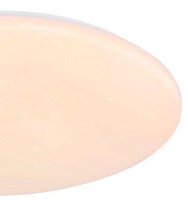 Ova jednostavna plafonska lampa serije RENA ističe se svojim bezvremenim stilom i mnogim funkcijama. Prečnik je 68 cm. Lampa sa opal-belim staklom u sparkle dekoru opremljena je LED sijalicom od 30 vati i daje 1850 lumena jako svetlo prijatnom toplom belom 3000 Kelvina svetlom bojom. Sa drugim modelima ove serije možete upotpuniti svoj životni prostor.