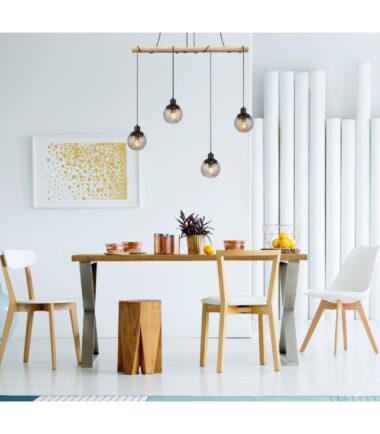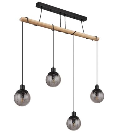 Visilica serije RICHARD je impresivan izvor svetlosti koji svaku prostoriju uranja u topao i šarmantan ambijent. Njena ravna grana, napravljena je od crnog mat metala i prirodnog drveta, daje lampi moderan ali i starinski izgled. Od plafonskog nosača nastavljaju se četiri kabla koji se završavaju sa E27 grlom. Abažuri su okrugli od stakla boje dima unutar kojih vise providni kristali. Oni prižaju očaravajući odraz svetlosti i prenose dašak luksuza i elegancije. Sa dužinom od 950 mm i širinom od 150 mm, lampa se odlično uklapa u svaku prostoriju. Kabl nudi slobodu da ga obmotate oko grane po želji, što omogućava individualno podešavanje visine. Dozvolite da budete inspirisani visilicom RICHARD i dajte svom domu jedinstven dodir stila i elegancije.