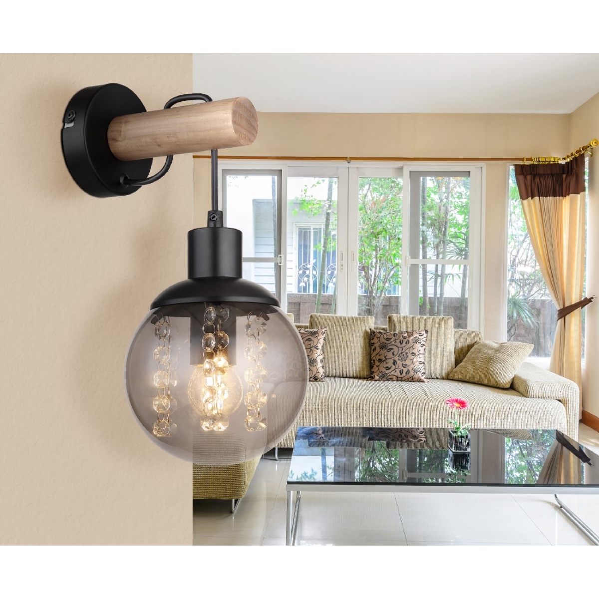Ova zidna lampa serije RICHARD je oličenje prijatnog osvetljenja. Lampa ima zajedničko E27 grlo i staklo u boji dima sa dekoracijom napravljenom od plastičnih kristala. Grlo E27 vam omogućava da sami odredite boju svetla i jačinu do maksimalne snage od 25 vati. Za još veću održivost preporučujemo LED izvor svetlosti.