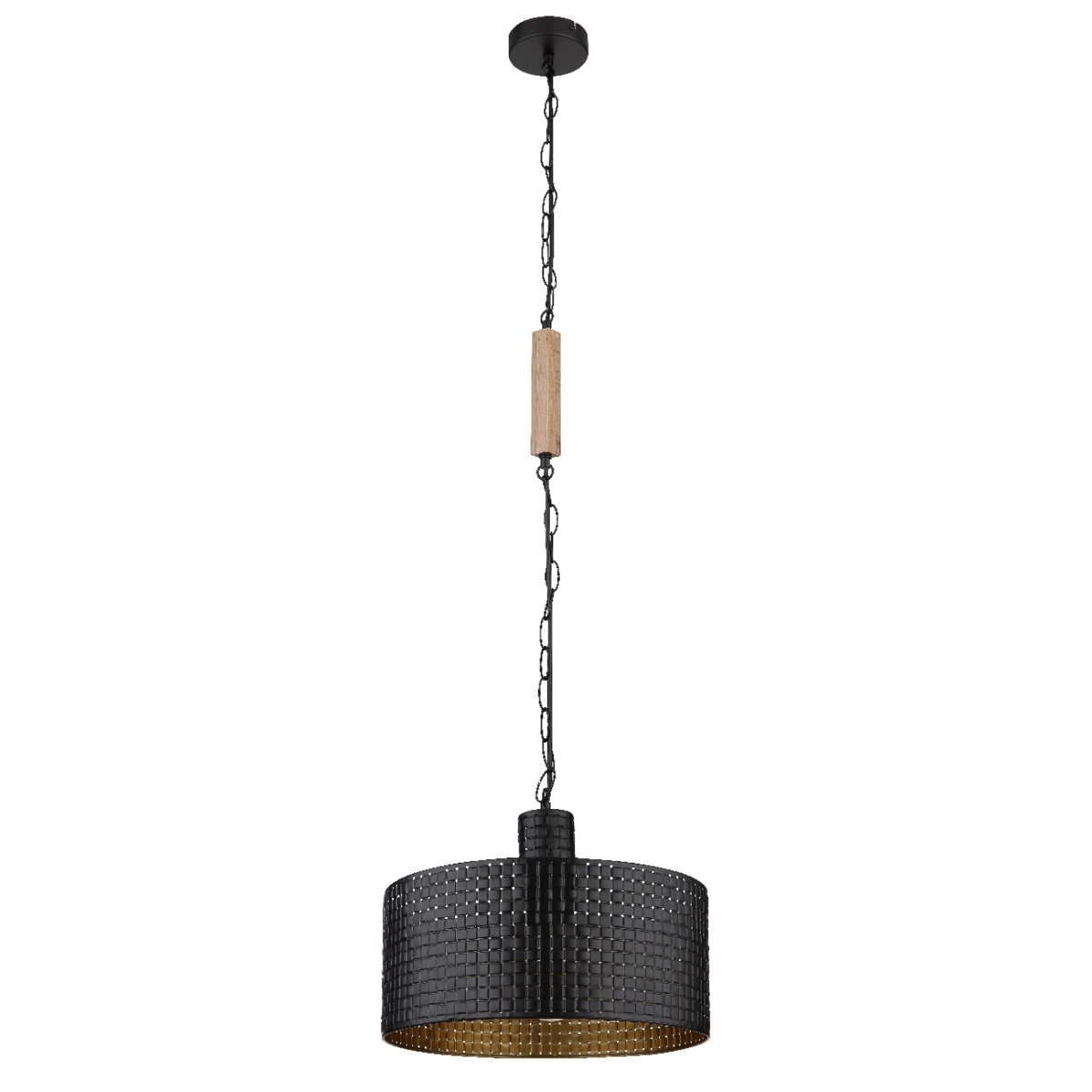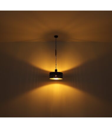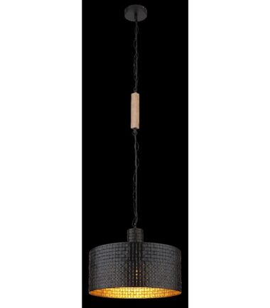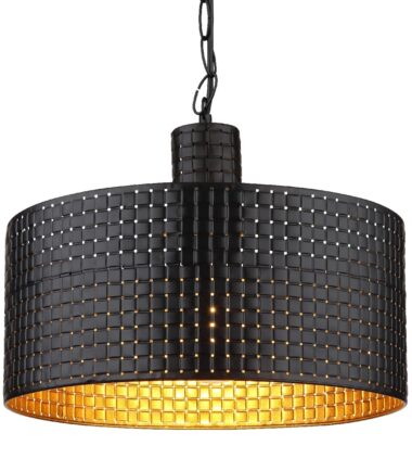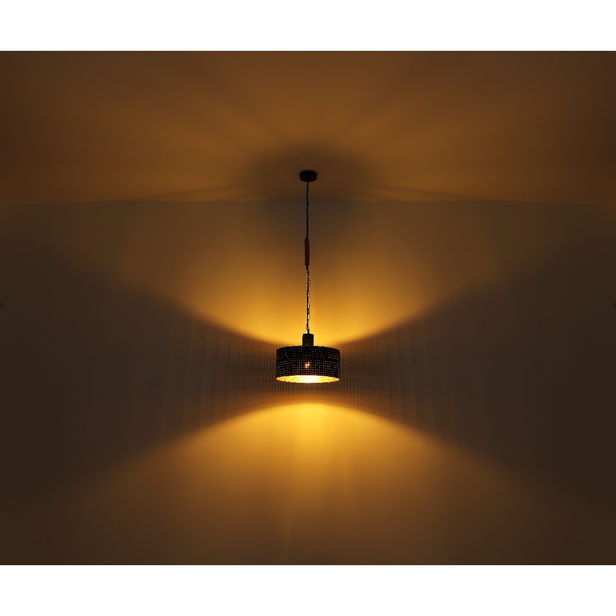 Ova prelepa visilica serije RIELLY inspiriše sjajnim dizajnom. Crni metalni lanac visi 1,2 metara od plafona i završava se na grlu E27 koje je opremljeno oblikovanim abažurom u crnoj i zlatnoj boji. Grlo E27 vam omogućava da sami odredite boju svetla i jačinu do maksimalnog izlaza od 60 vati.