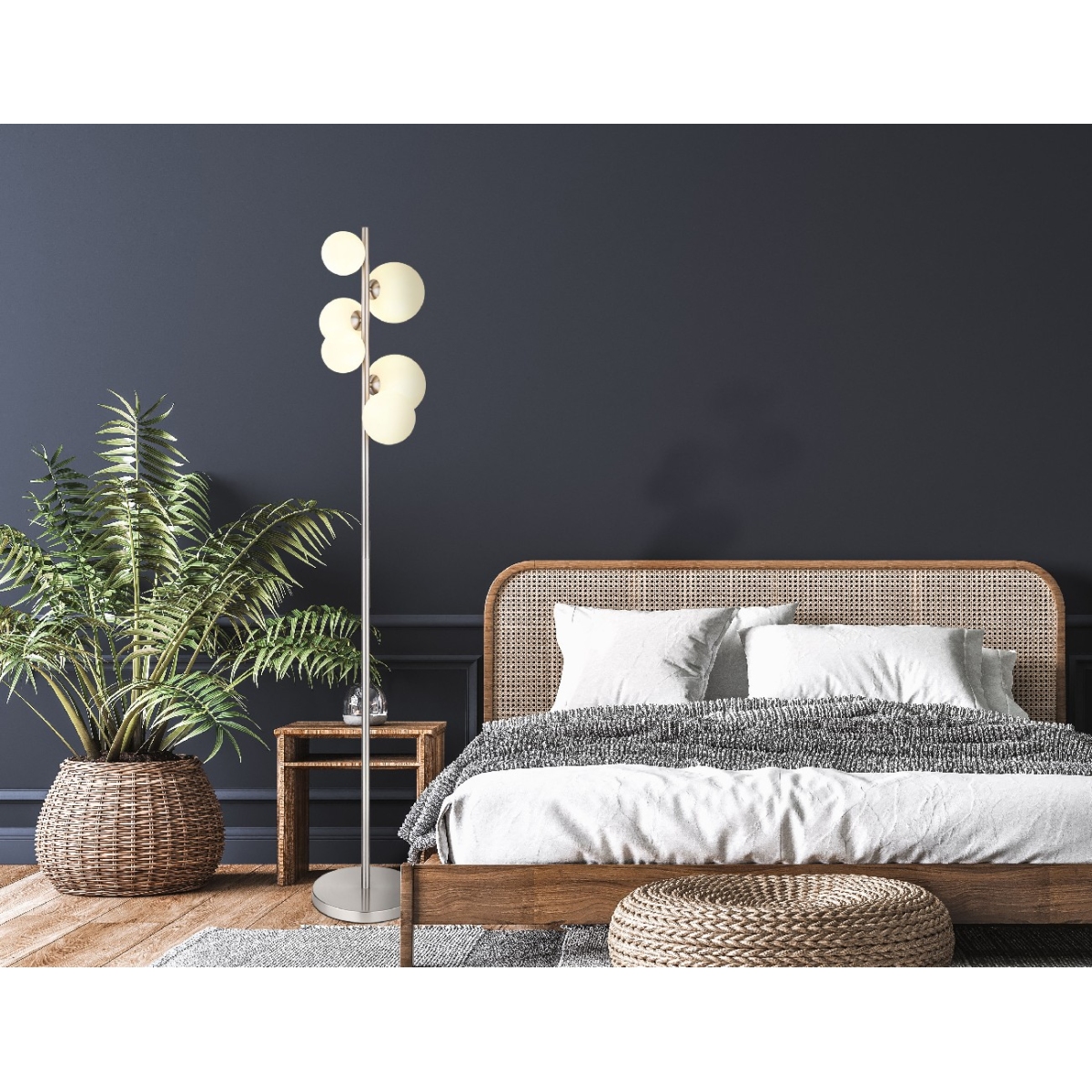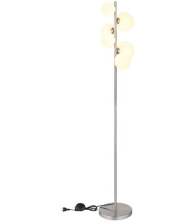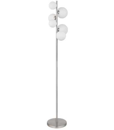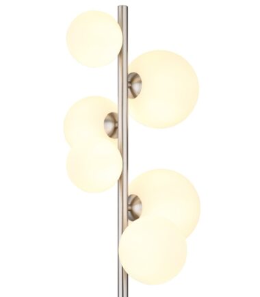Uronite svoj dom u meko svetlo uz RIHA podnu lampu. Sa svojim mat nikl metalom i opalnim staklom, ova lampa zrači bezvremenskom elegancijom. Sa impresivnom veličinom od 295x280x1550 mm i dužinom kabla od 1900 mm, nudi fleksibilne mogućnosti primene. Praktični prekidač na kablu omogućava praktično rukovanje. RIHA podna lampa je opremljena sa šest energetski efikasnih G9 LED sijalica (3,5 W, 230 V), koje proizvode toplo, prijatno svetlo sa temperaturom boje od 3000 K sa izvorom od 350 lm i izlazom od 310 lm. Dodajte dašak sofisticiranosti i topline svom životnom prostoru uz RIHA podnu lampu.