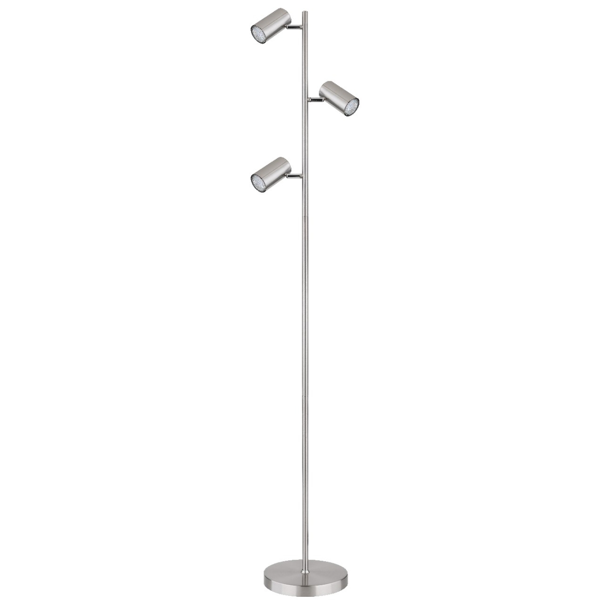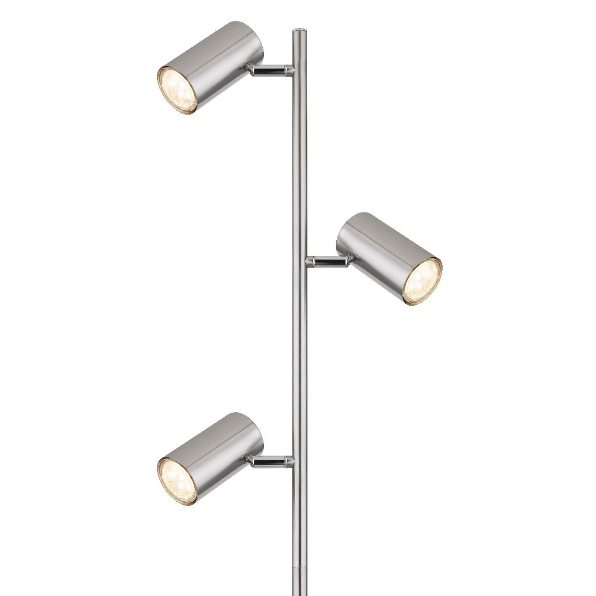Ova podna lampa iz serije Robi, visoka 154 cm, predstavlja divan dodatak vašem enterijeru. Napravljena od nikl-mat metala, podna lampa se sastoji od okruglog metalnog postolja na koje je pričvršćena šipka sa tri obrtna GU10 grla, obložena metalom. Mogu biti opremljene LED sijalicama po vašem izboru, što vam daje mogućnost da individualno odaberete boju svetlosti i intenzitet. Pored toga, ima uključeni prekidač pomoću kojeg se svetiljka može praktično uključiti i isključiti. Sa drugim modelima iste serije možete upotpuniti celokupnu sliku u svoja četiri zida.