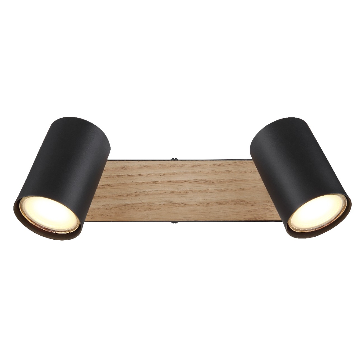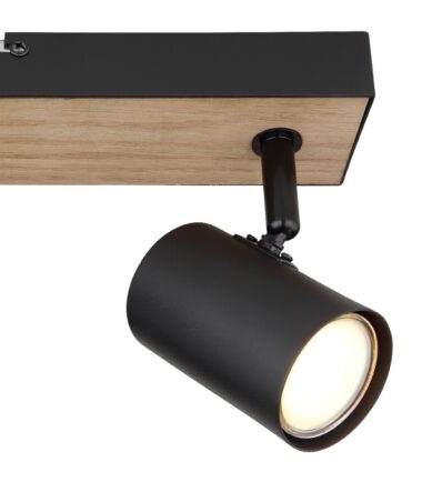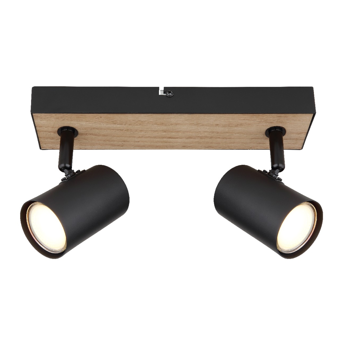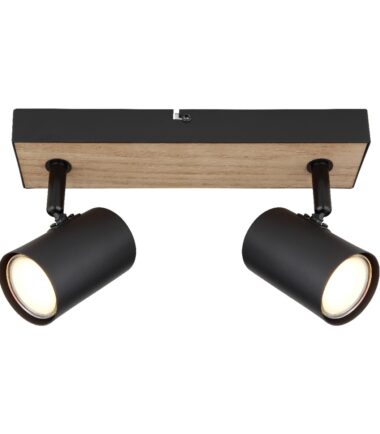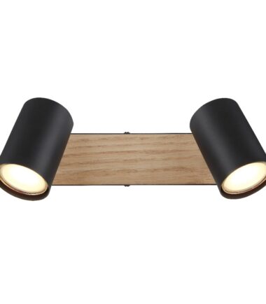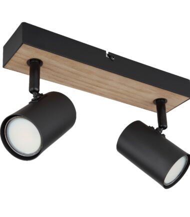 Ovaj jednostavan reflektor serije ROBBY inspiriše dizajnom i bojom. Na pravougaonom plafonskom nosaču napravljenom od crnog mat metala i MDF-a nalik drvetu (26 x 6cm) postoje dva GU10 grla, od kojih je svako pokriveno cilindričnim abažurom. Grlo GU10 vam omogućava slobodan izbor izvora svetlosti, do maksimalne snage od 35 vati.