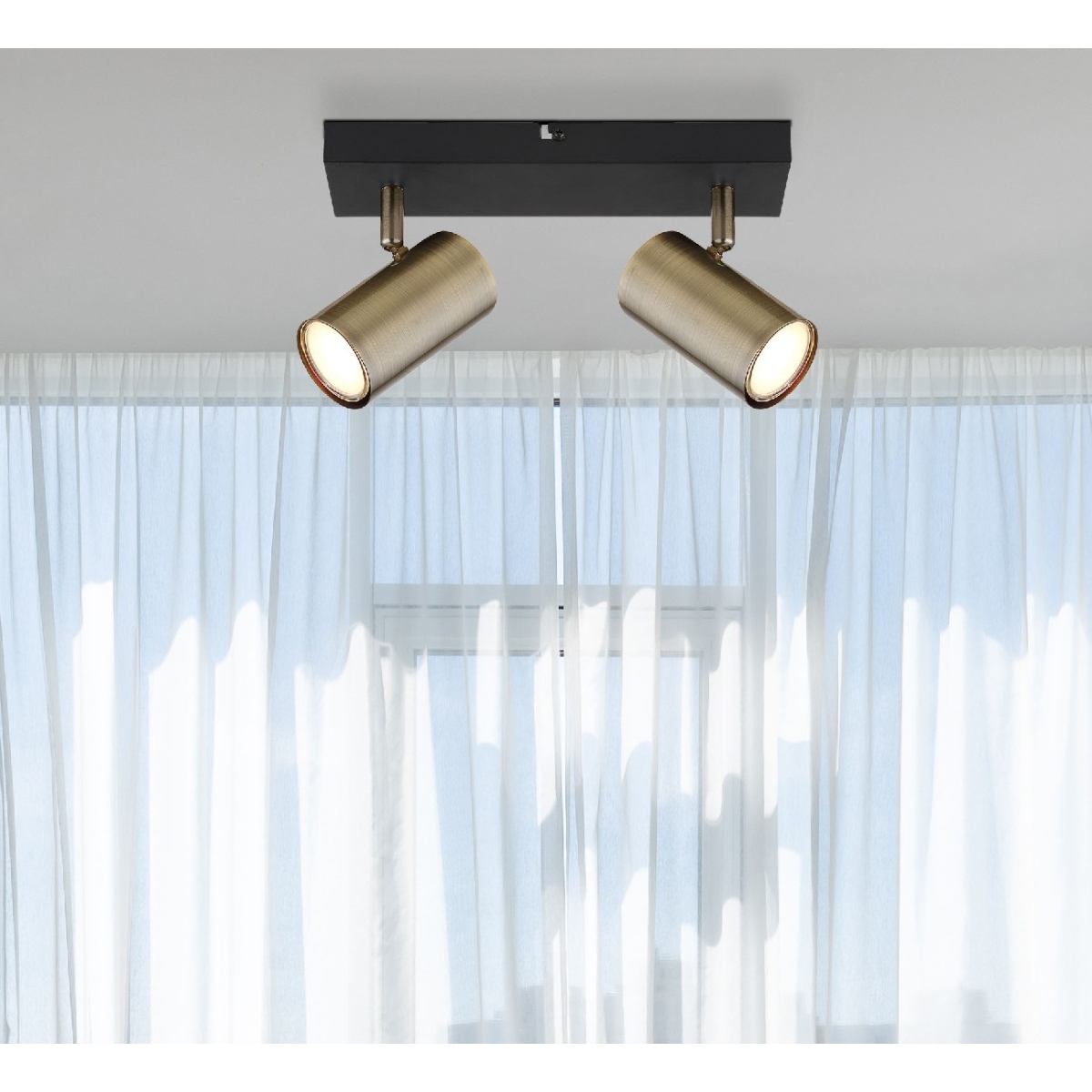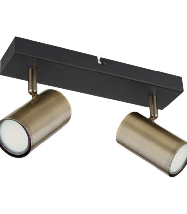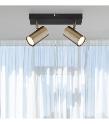 Ovaj jednostavan reflektor serije ROBBY inspiriše dizajnom i bojom. Na pravougaonoj plafonskoj osnovi (26x6cm) u mat crnoj boji postoje dva GU10 grla, od kojih je svako prekriveno cilindričnim abažurom u boji starog mesinga. Grlo GU10 vam omogućava slobodan izbor izvora svetlosti, do maksimalne snage od 35 vati.