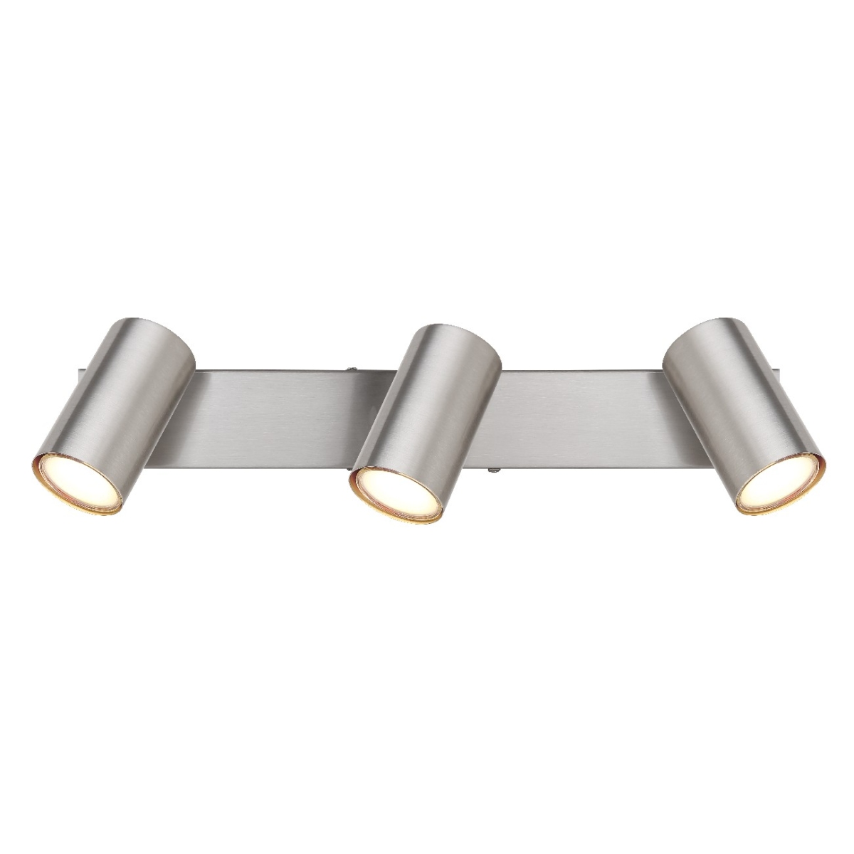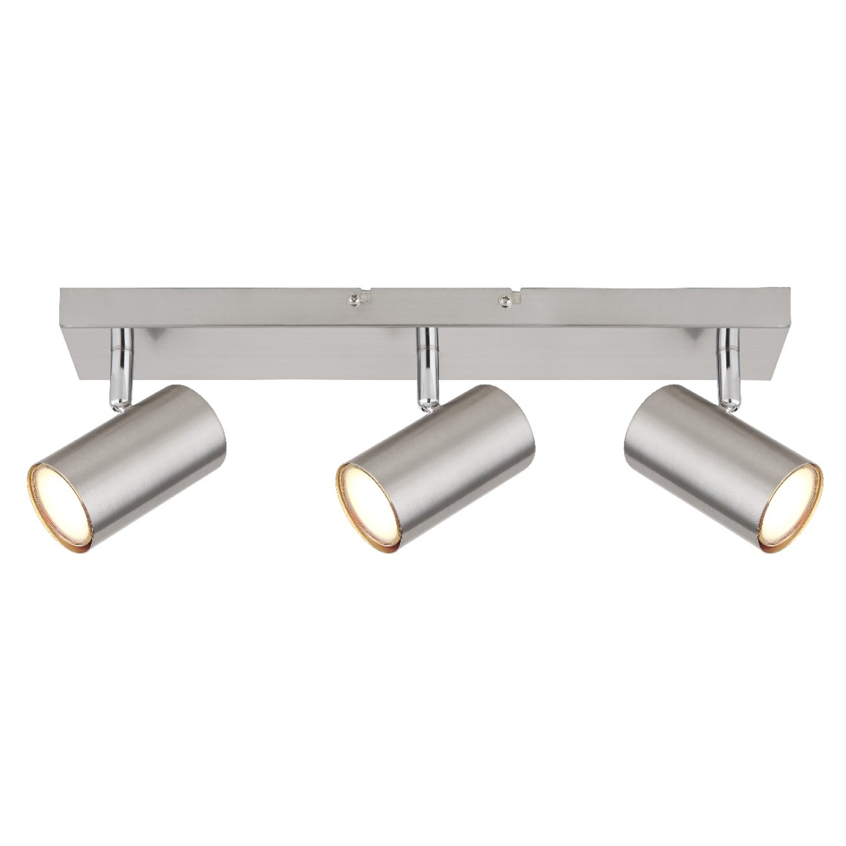 Ovaj jednostavan reflektor serije ROBBY inspiriše svojim dizajnom. Na pravougaonoj plafonskoj osnovi (41x6cm) postoje tri GU10 grla, od kojih je svako prekriveno cilindričnim abažurom mat nikl boje. Grlo GU10 vam omogućava slobodan izbor izvora svetlosti, do maksimalne snage od 35 vati.