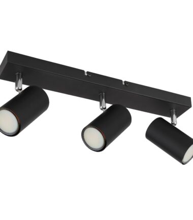 Ovaj jednostavan reflektor serije ROBBY inspiriše svojim dizajnom. Na crnoj pravougaonoj plafonskoj osnovi (41x6cm) postoje tri grla GU10, od kojih je svako prekriveno cilindričnim crnim mat abažurom. Grlo GU10 vam omogućava slobodan izbor izvora svetlosti, do maksimalne snage od 35 vati.
