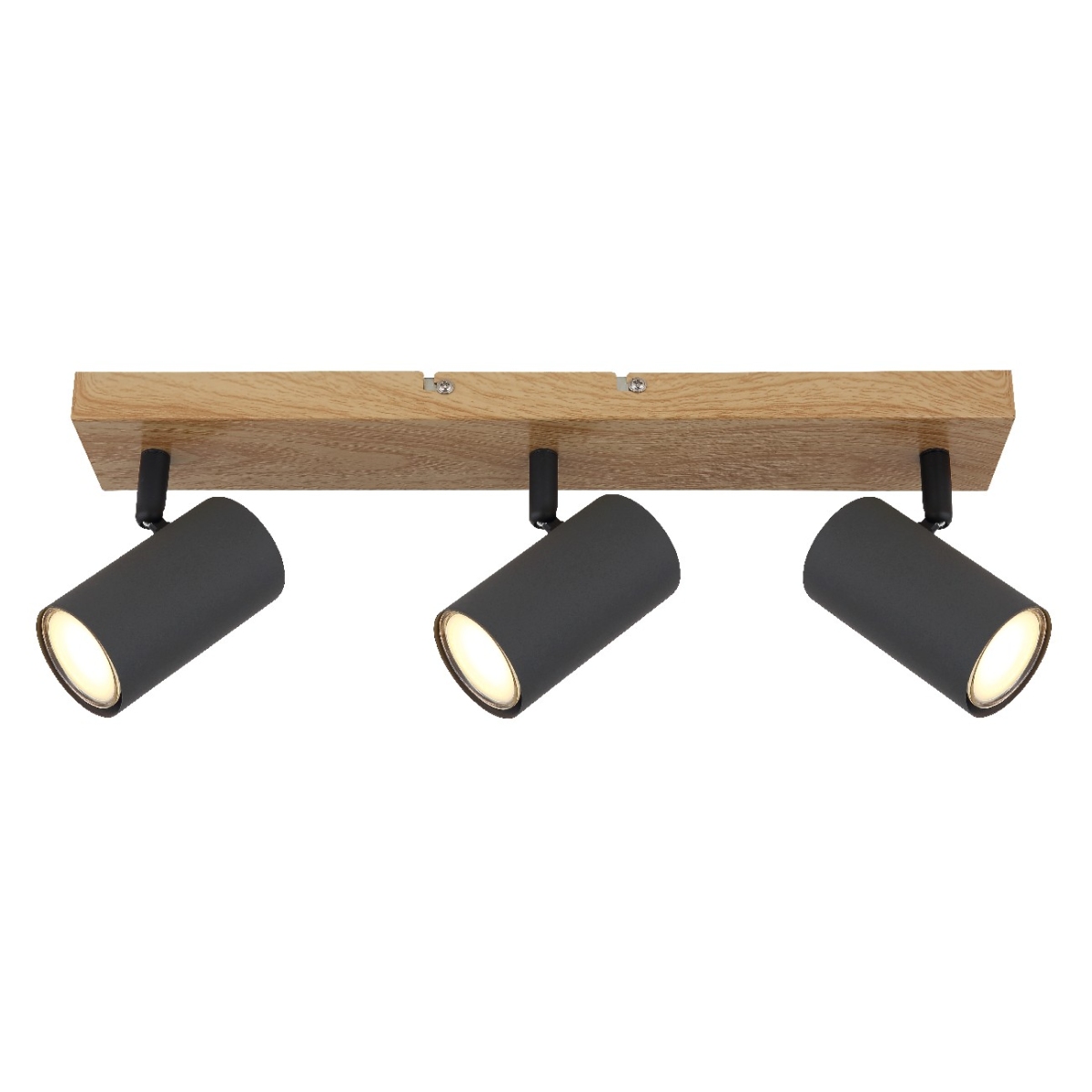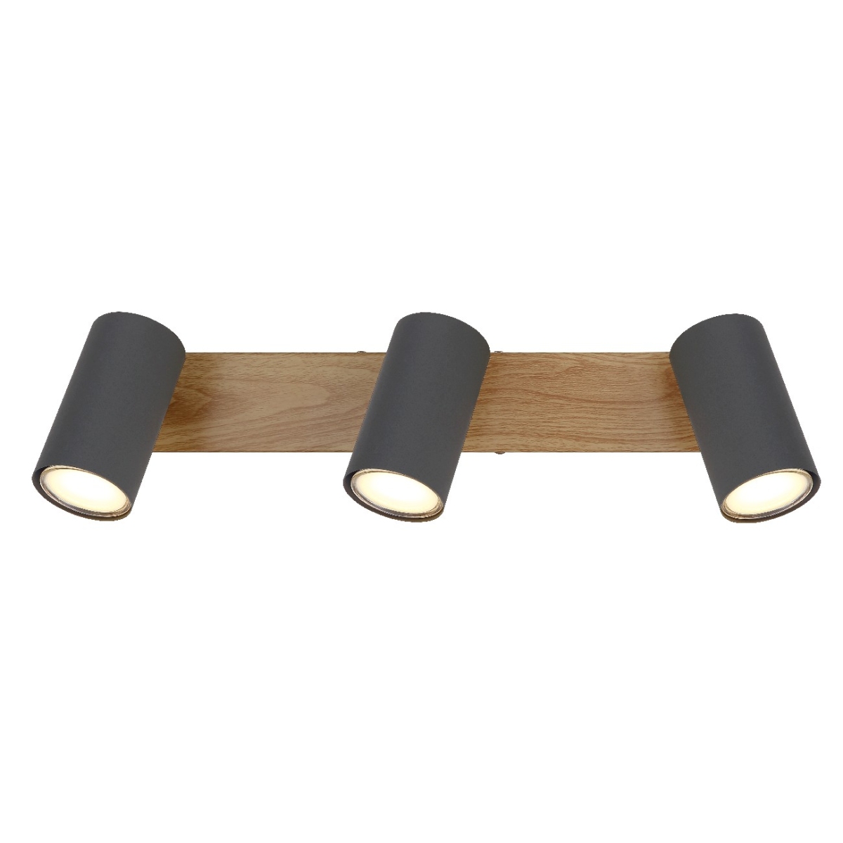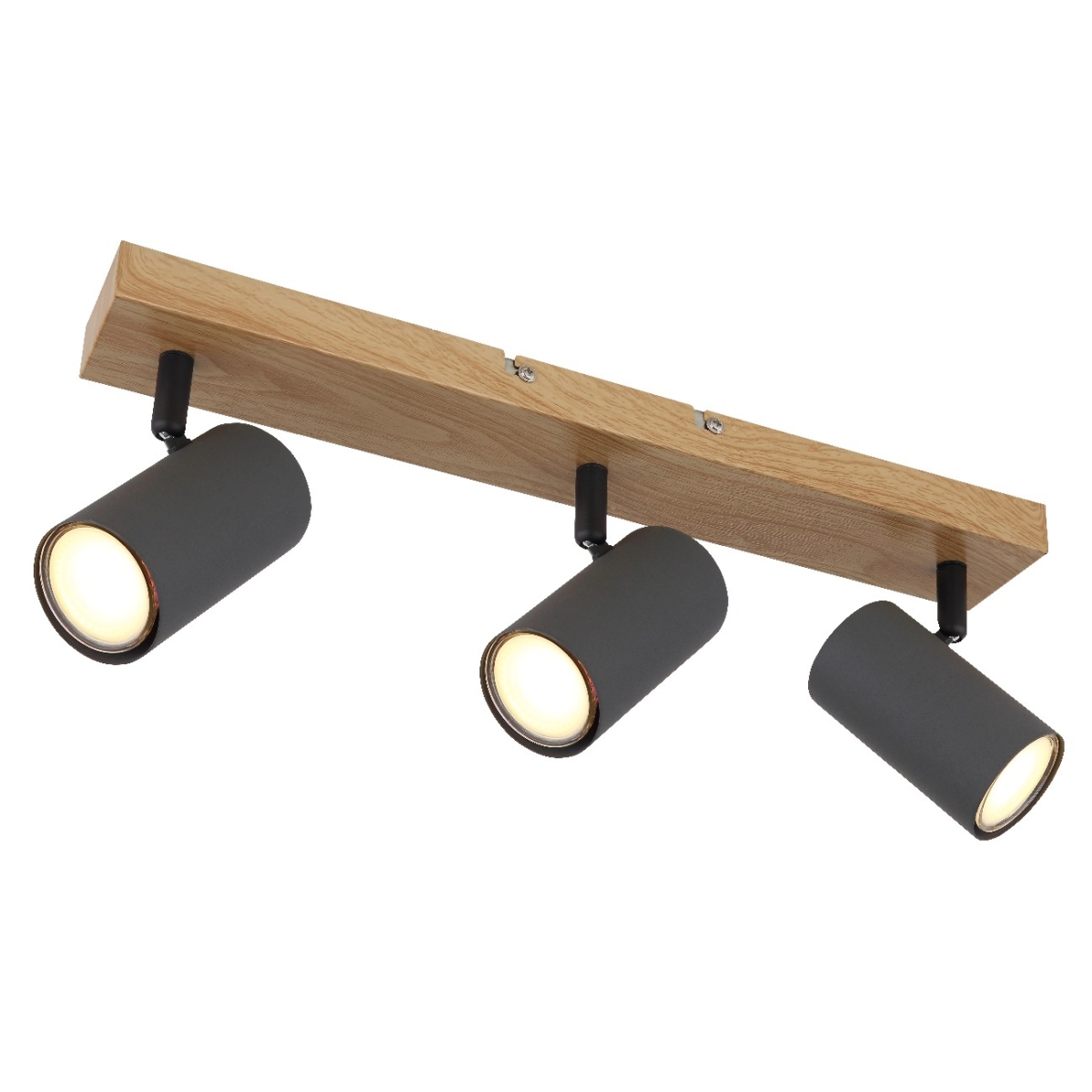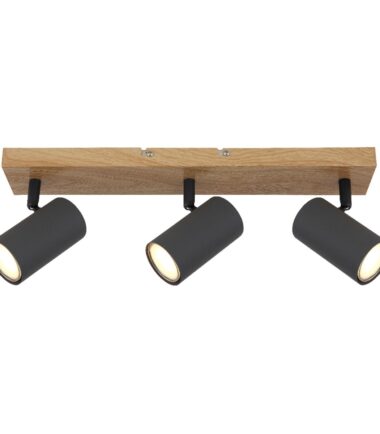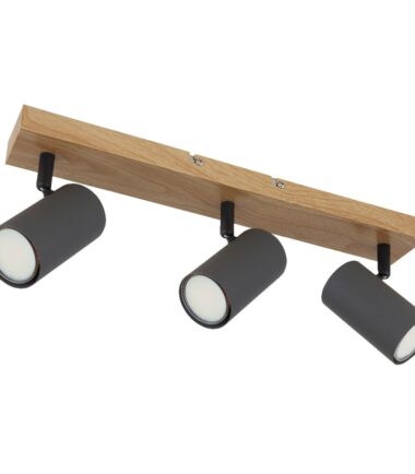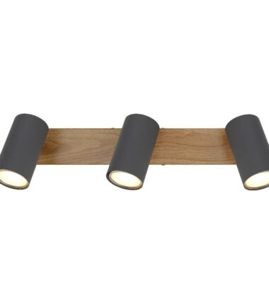Ovaj jednostavan reflektor serije ROBBY inspiruše dizajnom i bojama. Na pravougaonom plafonskom nosaču nalik drvetu (41x6cm) nalaze se tri GU10 grla, svako je prekriveno abažurom cilindričnog oblika u boji mat grafita. GU10 grlo vam omogućava da izaberete sijalice do maksimalne snage 35W.