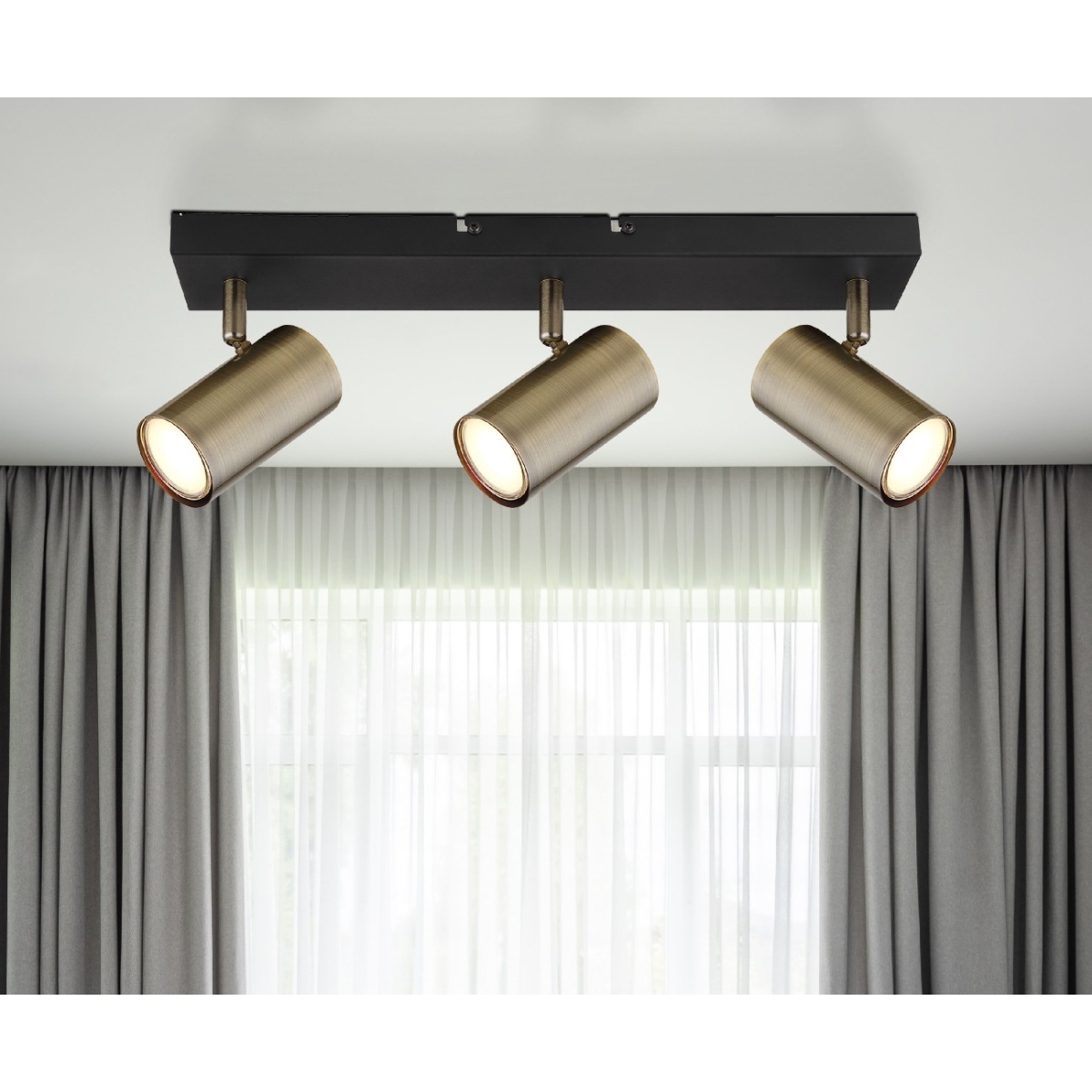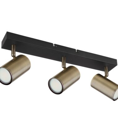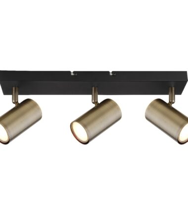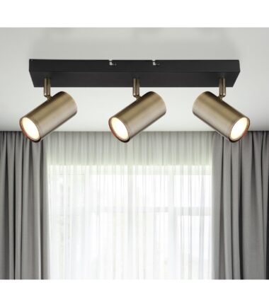 Ovaj jednostavan reflektor serije ROBBY inspiriše dizajnom i bojama. Na pravougaonoj plafonskoj osnovi (41x6cm) u mat crnoj boji postoje tri GU10 grla, od kojih je svako prekriveno cilindričnim abažurom u boji starog mesinga. Grlo GU10 vam omogućava slobodan izbor izvora svetlosti, do maksimalne snage od 35 vati.
