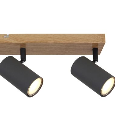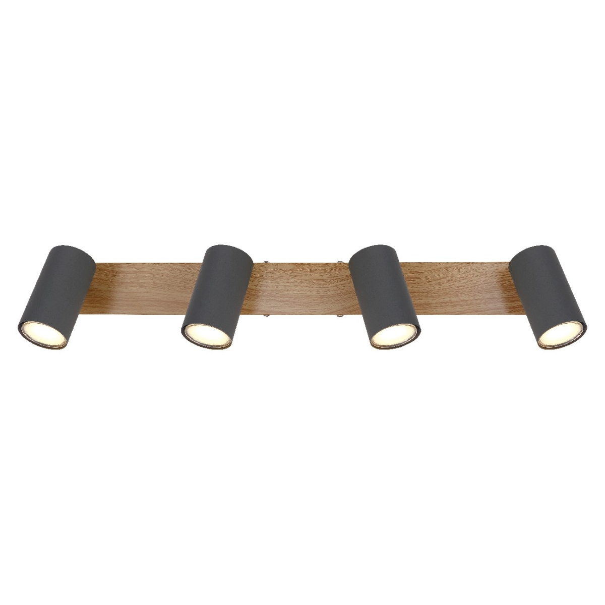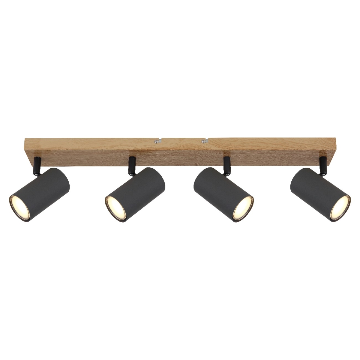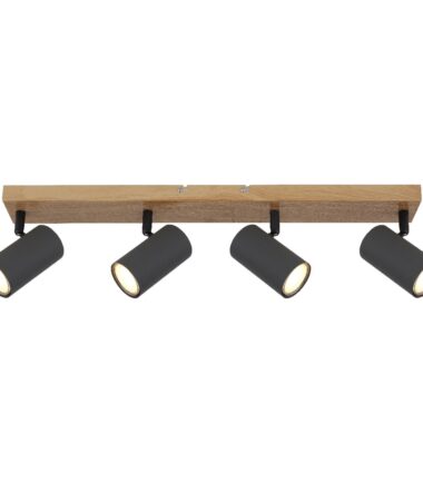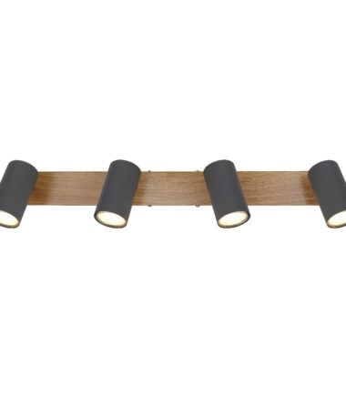 Ovaj jednostavan reflektor serije ROBBY inspiriše svojim dizajnom. Na pravougaonoj plafonskoj osnovi nalik drvetu (56x6cm) postoje četiri grla GU10, od kojih je svako pokriveno cilindričnim abažurom u boji mat grafita. Grlo GU10 vam omogućava slobodan izbor izvora svetlosti, do maksimalne snage od 35 vati.