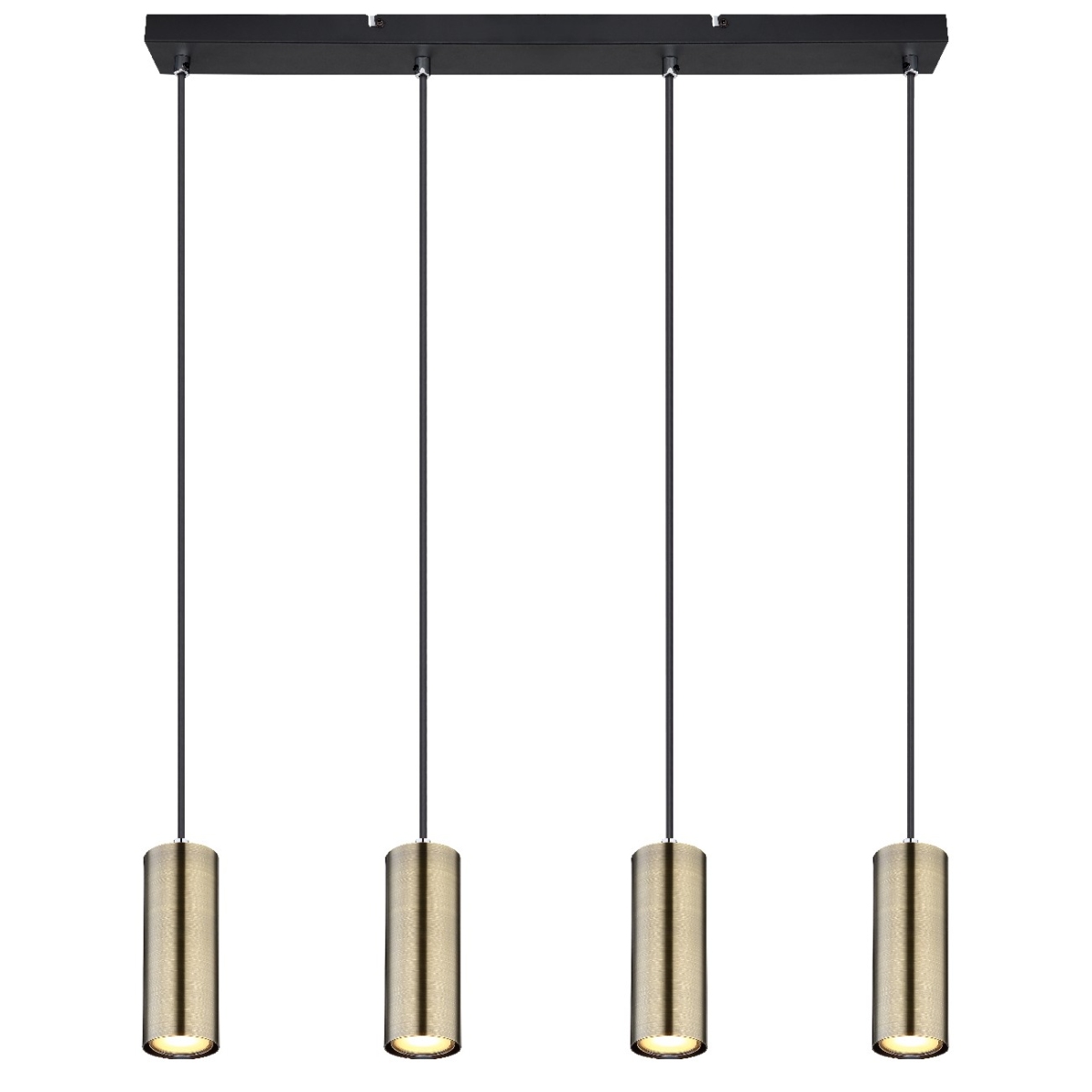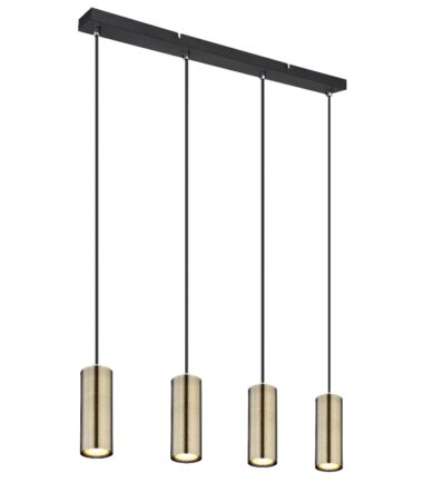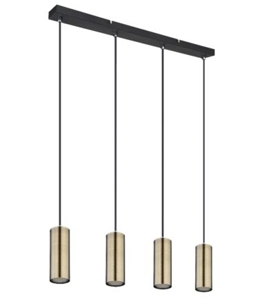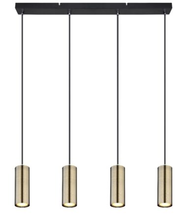 Ova prelepa visilica serije ROBBY u crnoj boji inspiriše svojim jednostavnim dizajnom. Na 65cm dugačkoj crnoj mat plafonskoj osnovi nalaze se 4 kabla do 1,2m dužine i svaki se završava GU10 grlom koja su prekrivena cilindričnim abažurom u boji starog mesinga. GU10 grla vam omogućavaju da sami odredite boju svetlosti i jačinu, do maksimalne snage od 35 vati. Sa ostalim modelima ove serije možete divno upotpuniti svoj dnevni boravak.
