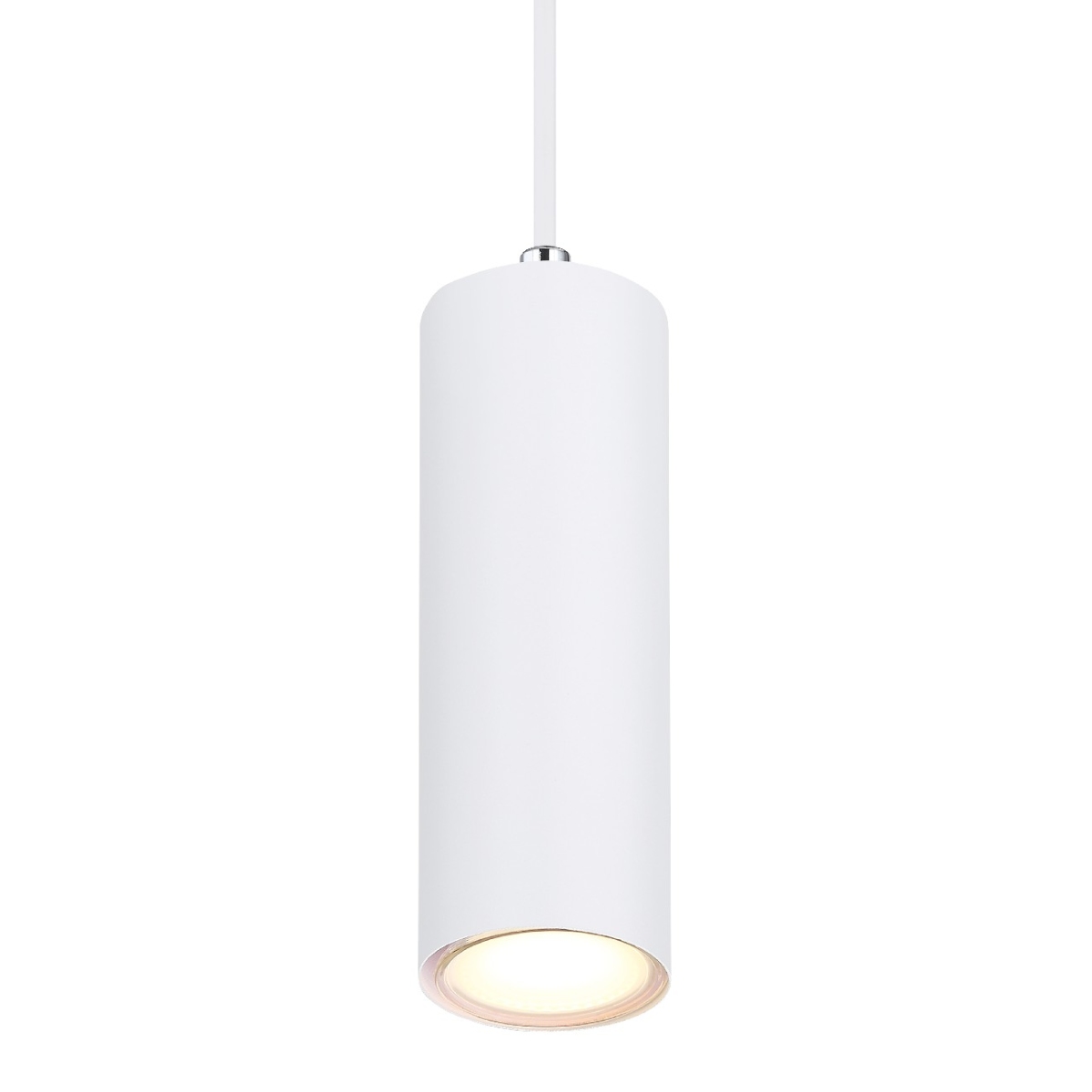 Ova očaravajuća visilica inspiriše svojim dizajnom. Cilindrični abažur u beloj boji pokriva utičnicu GU10 koja visi na crnom kablu 1,2m od plafona. Grlo GU10 vam omogućava slobodan izbor izvora svetlosti, do maksimalne snage od 35 vati.