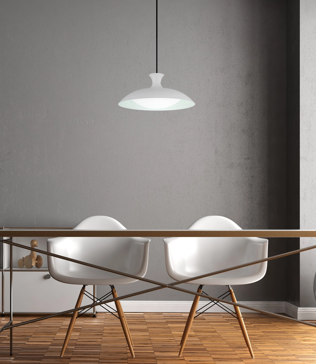 Viseća lampa ROCHA kombinuje jednostavnu eleganciju sa modernom funkcionalnošću. Okrugli abažur napravljen od belog, mat metala i opal plastike obezbeđuje ravnomernu i prijatnu raspodelu svetlosti koja svaku prostoriju uranja u ugodnu atmosferu. Sa prečnikom od 400 mm i svetlosnim izlazom od 1380 lumena, lampa nudi snažno, ali meko osvetljenje, idealno za trpezarije, dnevne sobe ili hodnike. Temperatura boje se može fleksibilno podesiti od 3000 K do 6000 K, tako da možete prilagoditi raspoloženje osvetljenja po želji – od toplo bele do dnevno bele. Zahvaljujući praktičnoj funkciji memorije, poslednje izabrano podešavanje se čuva tako da uvek možete uživati u lampi u željenoj svetlosnoj atmosferi. Uključujući LED diode, ROCHA obezbeđuje energetski efikasno i dugotrajno rešenje za osvetljenje. Njihov jednostavan, moderan dizajn čini ih stilskim dodatkom svakom domu.