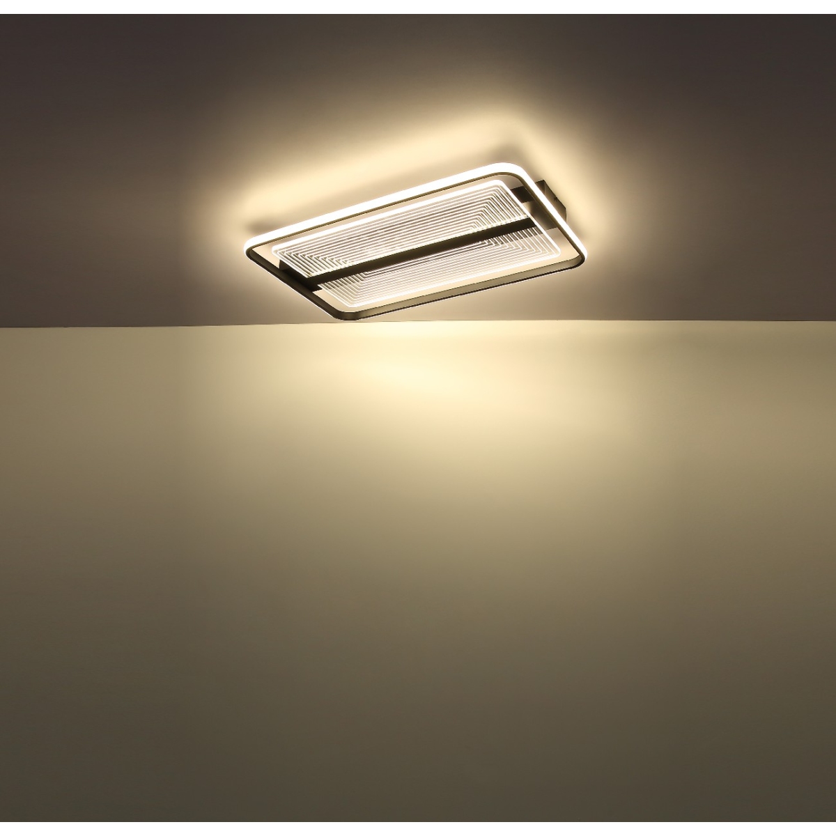 Ova sjajna plafonska lampa RONDA serije impresionira modernim dizajnom i funkcijama. Dva pravougaona LED panela (91 x 61 cm) sijaju od 2700 Kelvina topla bela do 6000 Kelvina hladno bela svetlost koja se može zatamniti. Pomoću daljinskog upravljača možete koristiti i funkciju noćnog svetla i funkciju memorije.