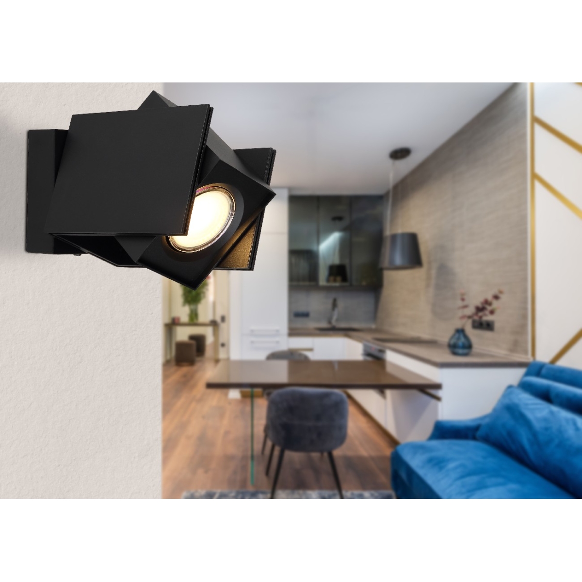 Ova moderna zidna lampa RORY serije impresionira svojim elegantnim dizajnom. U apstraktnom obliku, kućište je napravljeno od crnog aluminijuma i metala. U ovom pravougaoniku se nalazi GU10 grlo, koja vam omogućava da sami odredite boju svetlosti i jačinu, do maksimalne snage od 5 vati.