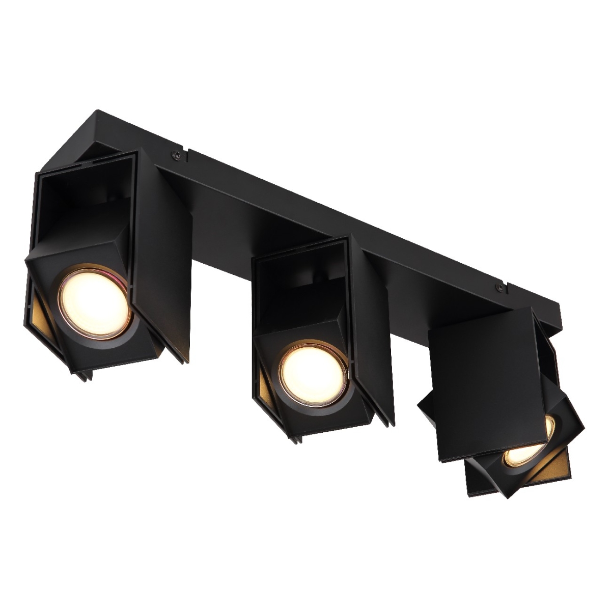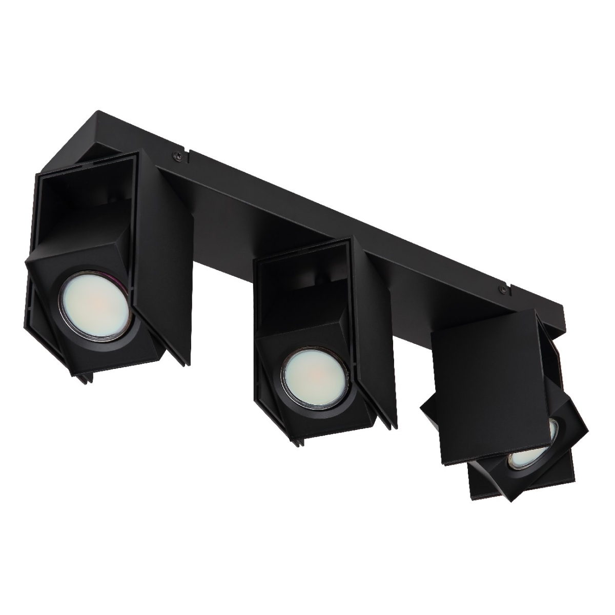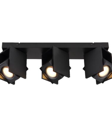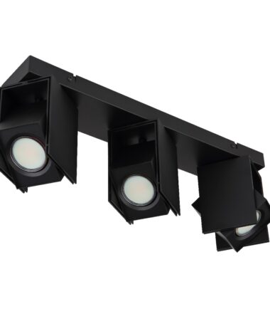 Ova moderna plafonska lampa serije RORY impresionira svojim elegantnim dizajnom. U apstraktnom obliku formiraju se tri kućišta (43 x 8 cm) od crnog aluminijuma i metala. U svakom od tri pravougaonika nalazi se GU10 grlo, koja vam omogućava da sami odredite boju svetlosti i jačinu, do maksimalne snage od 5 vati.