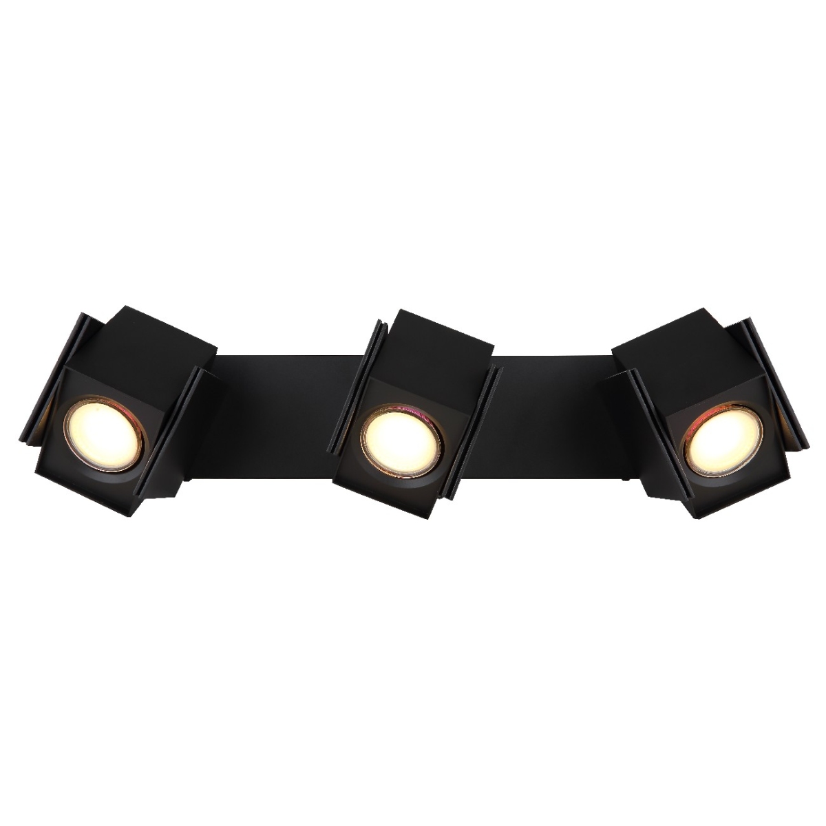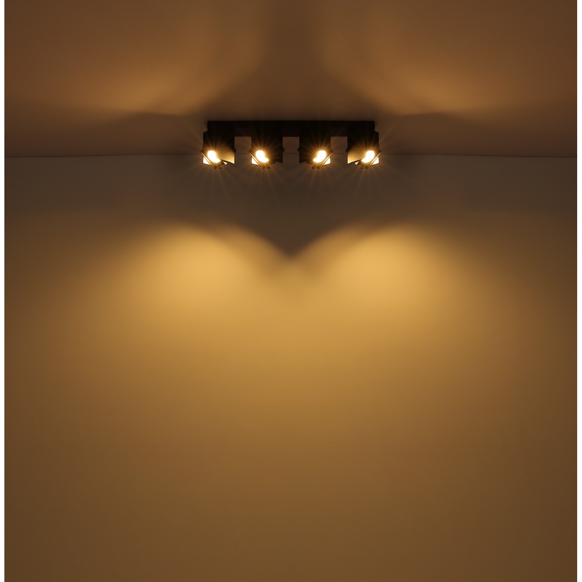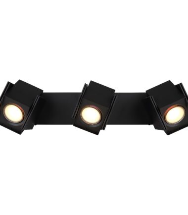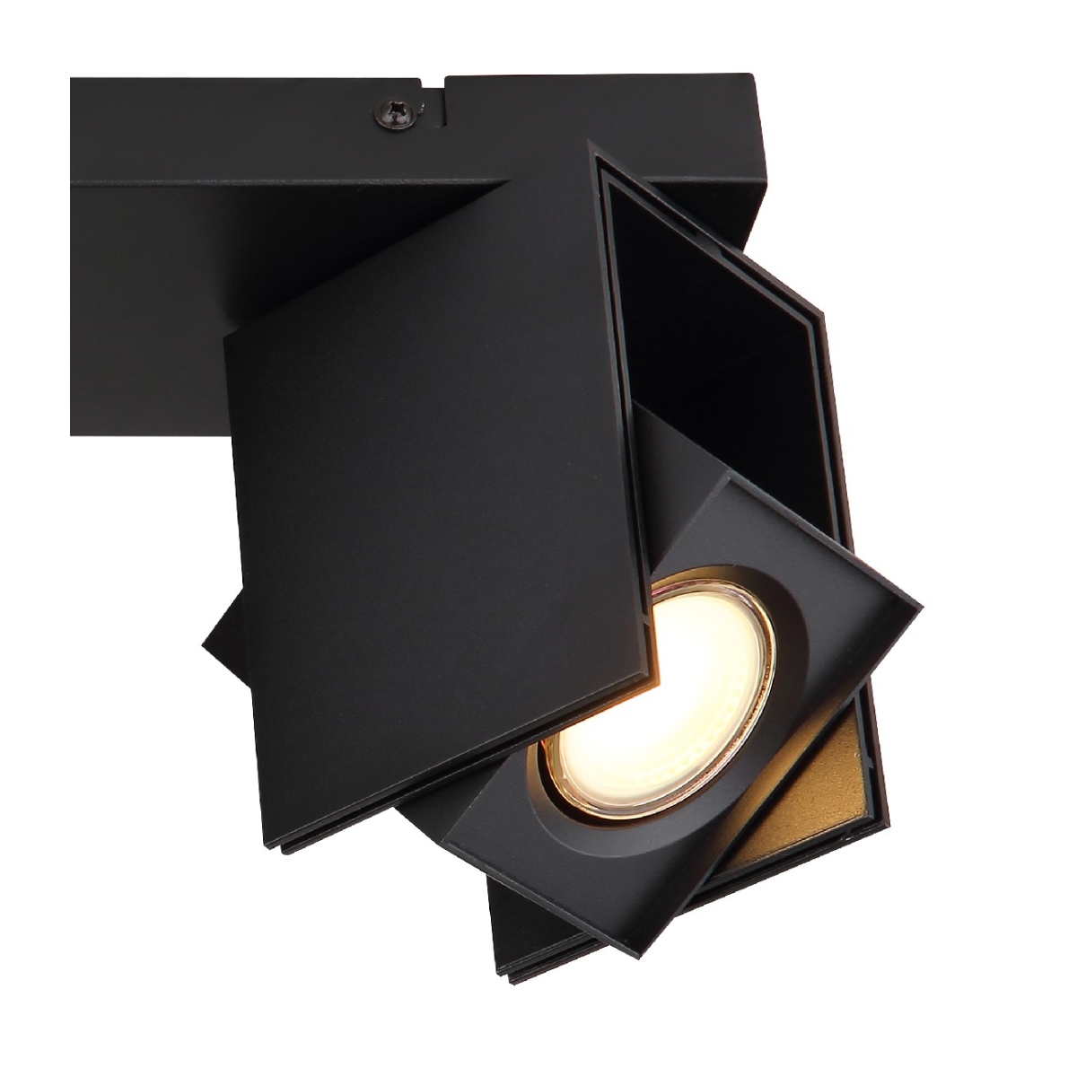 Ova moderna plafonska lampa serije RORY impresionira svojim elegantnim dizajnom. U apstraktnom obliku formiraju se tri kućišta (43 x 8 cm) od crnog aluminijuma i metala. U svakom od tri pravougaonika nalazi se GU10 grlo, koja vam omogućava da sami odredite boju svetlosti i jačinu, do maksimalne snage od 5 vati.