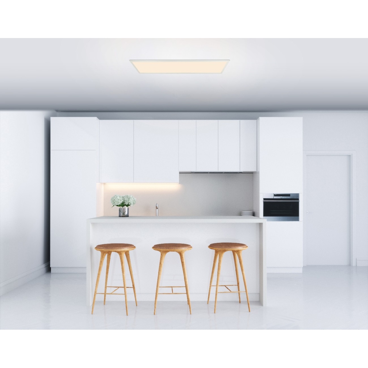Ovo je jednostavna plafonska lampa, iz serije ROSI. U formi je panela, praktična je i svestrana. Zbog svog jednostavnog dizajna, može se koristiti na više načina, bilo u spavaćoj sobi ili hodniku. Lampa ima dužinu od 120cm i širinu 30cm. Plafonski nosač je napravljen od belog aluminijuma i na dnu lampa ima poklopac, tako da se svetlo ravnomerno raspoređuje u prostoriji. Pomoću obezbeđenog daljinskog upravljača možete da promenite temperaturu boje i takođe da je popravite. Takođe možete da prigušite svetlo. Lampa ima 40 vati,LED sijalicu i obezbeđuje 3200 lumena jake svetlosti. Ovaj artikl možete veoma dobro da kombinujete i sa drugim proizvodima serije.