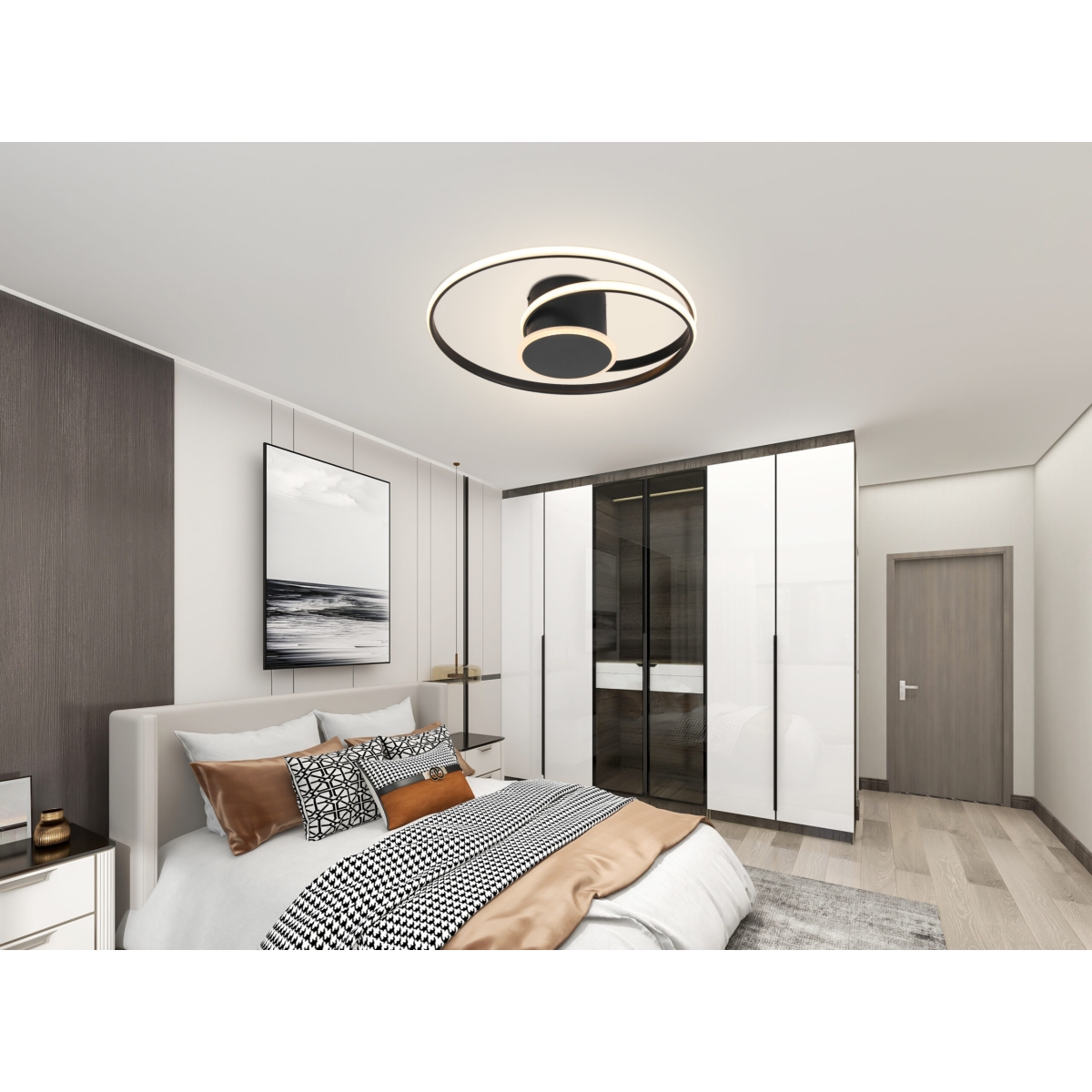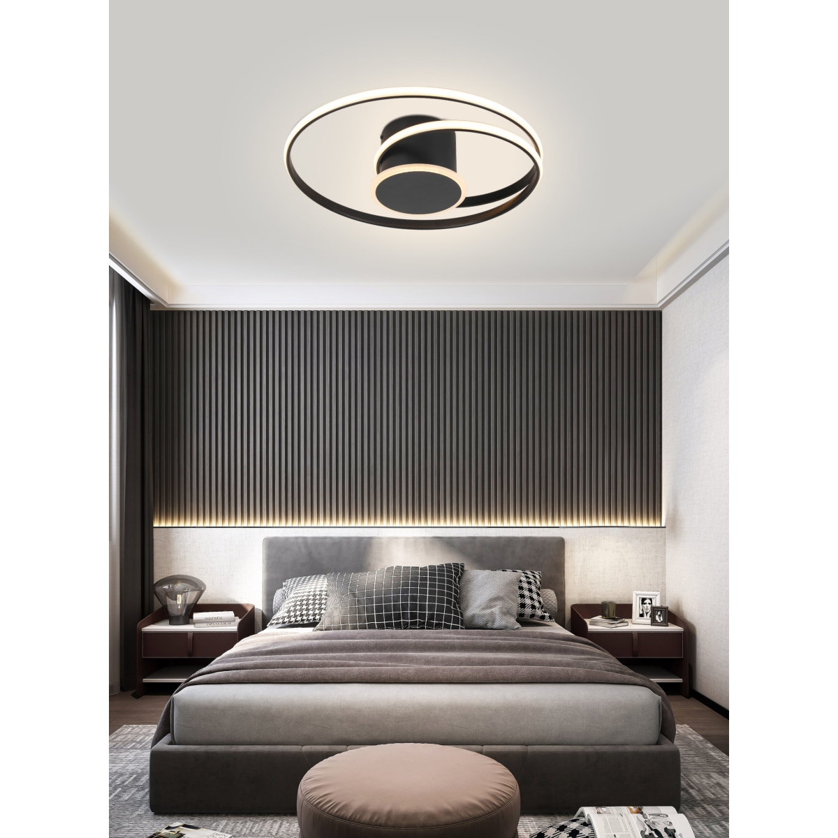 Ova moderna plafonska lampa iz serije ROSI (Ø 460)divno se uklapa u ambijent raznih živih stilova zbog svog elegantnog dizajna napravljenog od crnog mat metala. Njen spiralni dizajn privlačiće poglede u svakoj prostoriji. Zahvaljujući LED sijalici, lampa emituje 4400 lumena jake svetlosti i boju od 4000K.