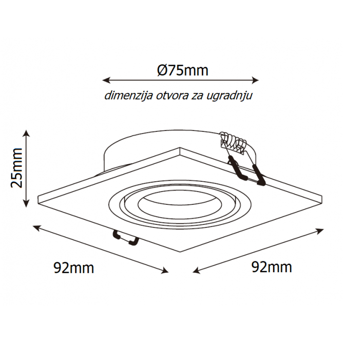 Dimenzije otvora za ugradnju: Ø 75 mm