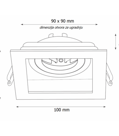 Kvalitetna usmeravajuća rozetna, odlične završne obrade, crne boje. Deo sa sijalicom je upušten što daje specifičan efekat tokom rada. Za ugradnju ovog tipa svetiljke potrebno je da spušteni plafon bude minimalno 85 mm, zavisno od sijalice.