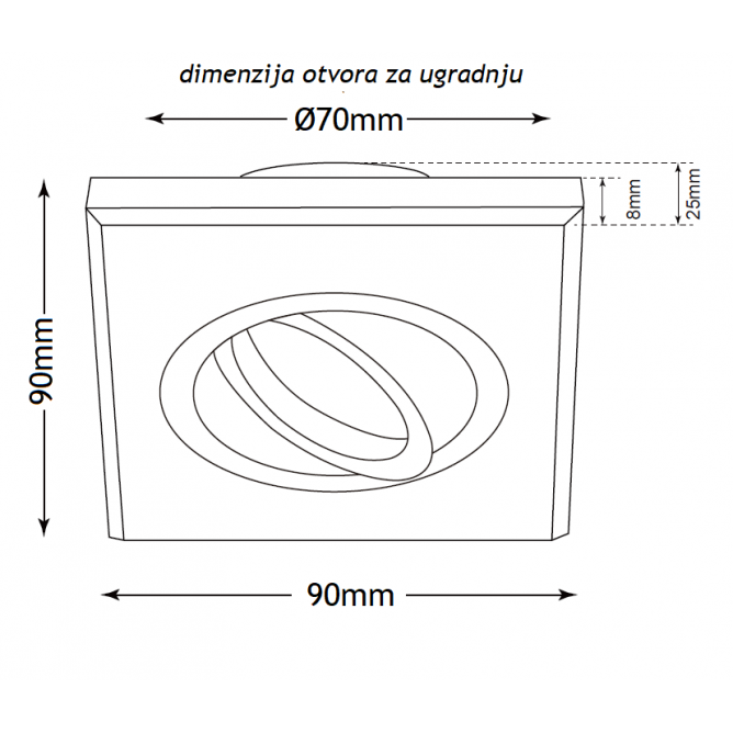 Četvrtasta rozetna hromiranog izgleda sa kristalnim delovima. Debljina stakla-kristala 8 mm. Preporučena snaga sijalice *(ukoliko je halogena) max.50 W.