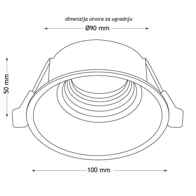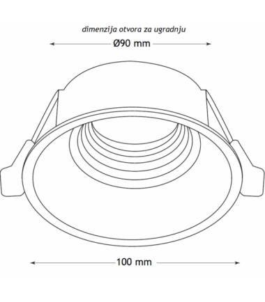 Dimenzije otvora za ugradnju Ø 90 mm