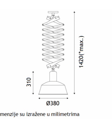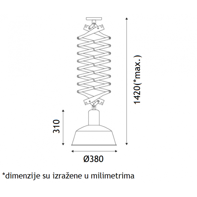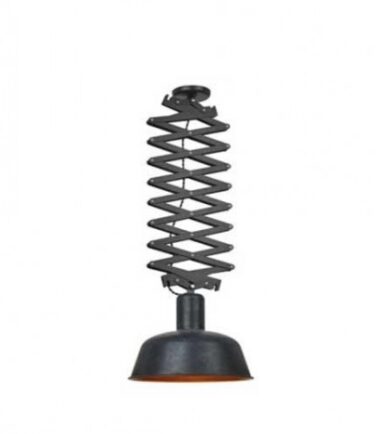 Nadgradna viseća svetiljka industrijskog retro dizajna, koja je zahvaljujući mehanizmu „makaza“ podesiva po visini. Abažur mat crne boje spolja, zlatne boje iznutra.