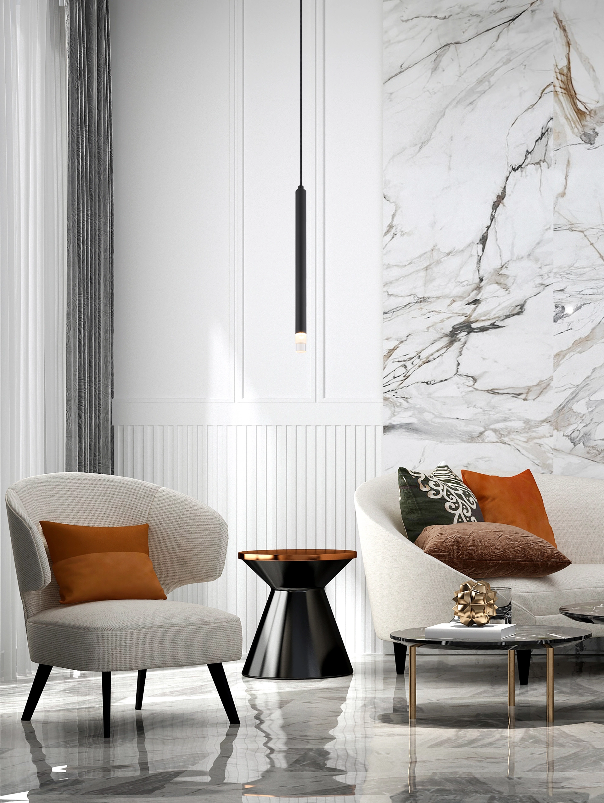 Viseća lampa RYAN je minimalističko rešenje za osvetljavanje vašeg prostora. Njen tanak, cilindrični abažur napravljen od crnog mat lakiranog metala i akrila sa satenskom završnom obradom daje čist i bezvremenski oblik koji je savršen za moderne stilove prostorija. Telo napravljeno od crnog, mat lakiranog metala formira stabilnu i čvrstu osnovu za lampu. Sa prečnikom od 120 mm, viseća lampa RYAN je idealna za opremanje kancelarija, poslovnih prostorija ili drugih prostora kojima je potrebno jednostavno i elegantno osvetljenje. Viseća lampa RYAN nudi jedinstvenu kombinaciju minimalističkog dizajna i odlične distribucije svetlosti.