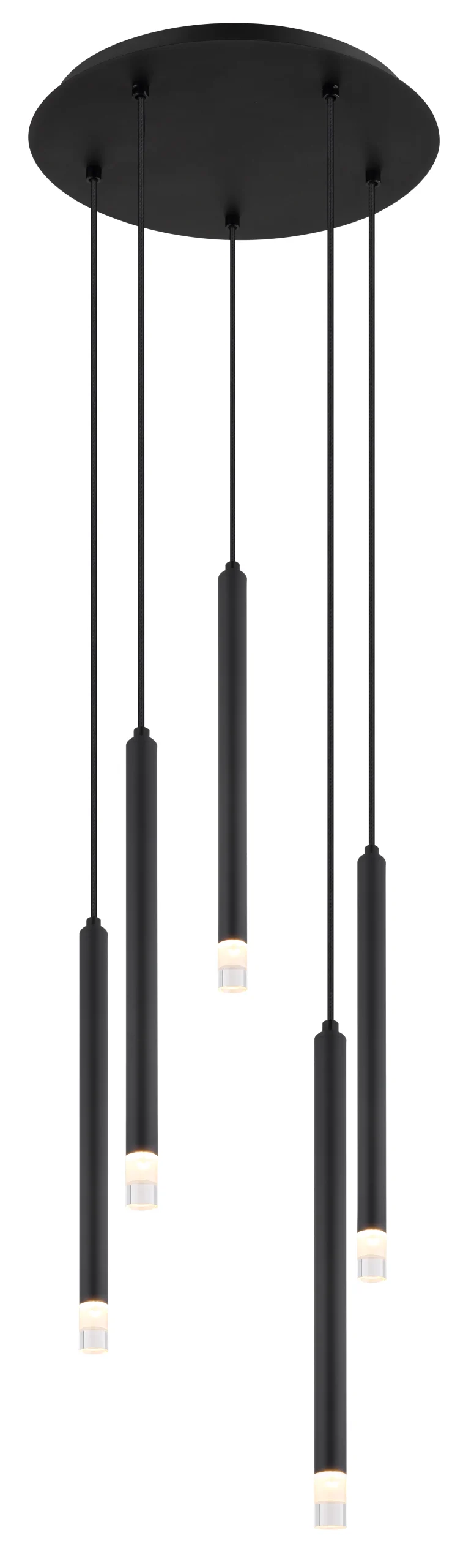 Viseća lampa RYAN je elegantno i moderno rešenje za osvetljavanje vašeg prostora. Ova okrugla viseća lampa ima pet tankih, cilindričnih abažura napravljenih od crnog mat lakiranog metala i akrila sa satenskom završnom obradom, postavljenih u metalno kućište nalik trupu, napravljeno od crnog mat lakiranog metala. Viseća lampa RYAN nudi jedinstvenu kombinaciju minimalističkog dizajna i odlične distribucije svetlosti. Sa prečnikom od 340 mm, viseća lampa RYAN je idealna za opremanje kancelarija, poslovnih prostorija ili drugih prostora kojima je potrebno elegantno i moderno osvetljenje. Viseća lampa RYAN je idealan izbor za one koji traže jedinstveno i bezvremensko rešenje za svoje osvetljenje.