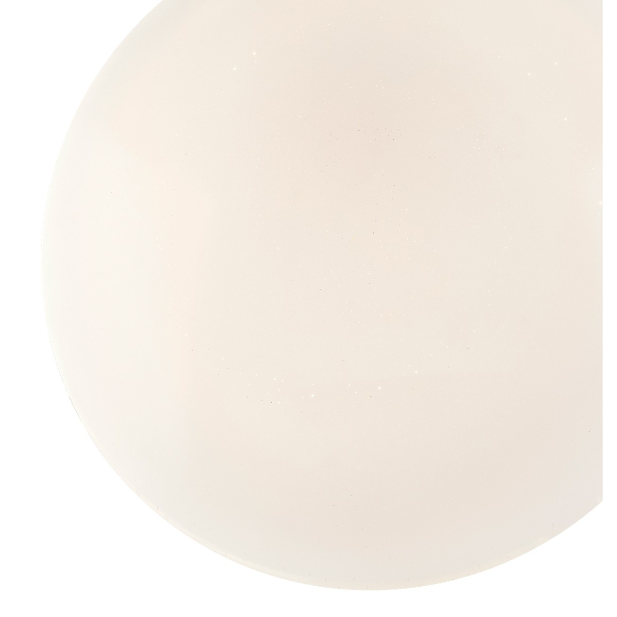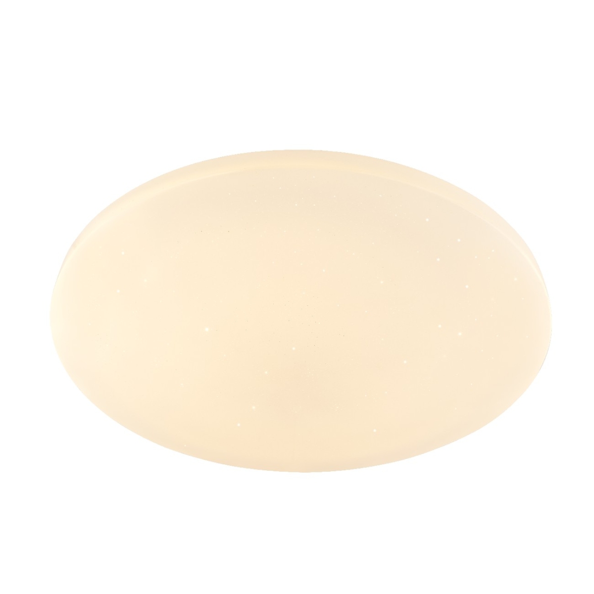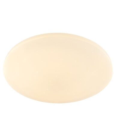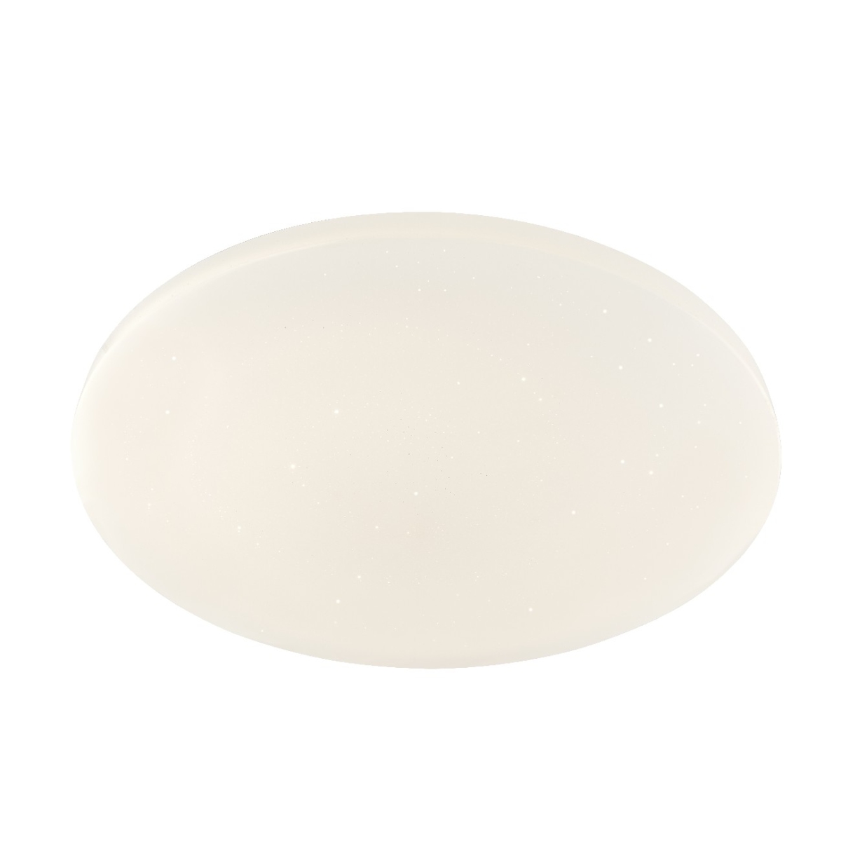Ova klasična okrugla (Ø54cm) plafonska lampa SAJAMA I napravljena od belog akrila sa svetlucavim dekor efektom. Pomoću uključenog daljinskog upravljača i CCT funkcije, svetlosna boja se može regulisati i fiksirati u nekoliko faza između prijatnog toplog belog 3000K i 6000K hladnog belog svetla. Sa uključenom LED sijalicom od 30W, ova plafonska lampa obezbeđuje maksimalno 2500 lumena jako svetlo, dimabilna je i po želji možete je prilagoditi dotičnim situacijama. Pored toga, ova lampa ima funkciju noćnog svetla i funkciju memorije. Ova Smartlight lampa je jednostavna za rad pomoću Tuya Smart aplikacije (Android TM/IOS). Kontrola glasa je laka sa Amazon Echo Tm ili Google Home.