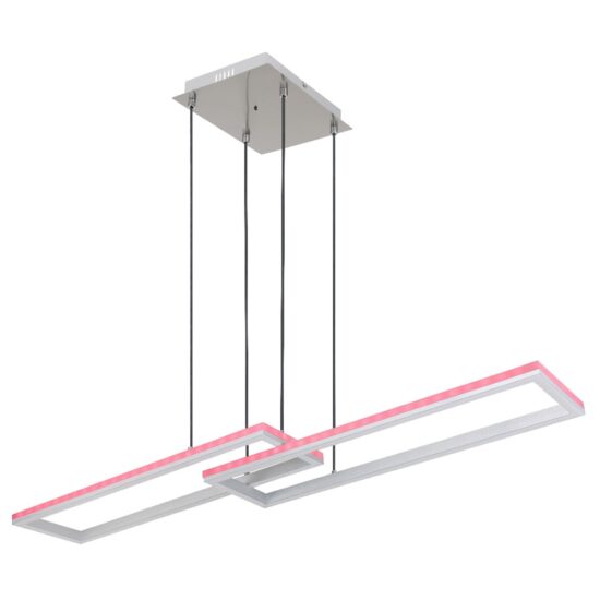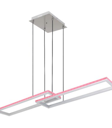 Visilica ima telo napravljeno od srebrno-sivog metala i aluminijuma kao i opalni plastični abažur. Kabl je tekstilno crn, a lampa može da se zatamni sa nekoliko koraka preko zidnog prekidača. Moguće je fiksirati boje i postoji RGB menjač boja gde se boje takođe mogu popraviti. Tu je i RGB rainbow efekat, funkcija memorije, noćno svetlo, tajmer i daljinski upravljač (uključujući 2x AAA baterije). Dimenzije su LxWxH: 1195x255x1200mm i lampa sadrži LED sa 40W i 230V, koji ima izvor svetlosti od 460-5150lm i izlaz od 210-2300lm, kao i RGB LED sa 5W i 230V. CCT (temperatura boje) je 2700-6500K.