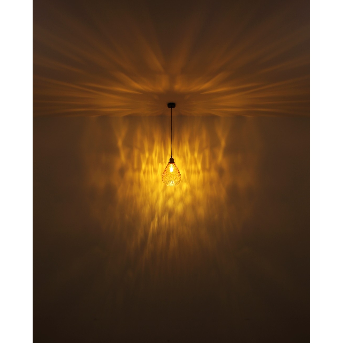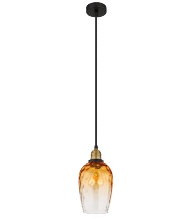 Doživite fascinantnu kombinaciju elegancije i stila uz pomoć ove visilice. Ova izuzetna lampa impresionira svojim elegantnim dizajnom napravljenim od mat crnog metala i providnog stakla sa prelivom ćilibara. Mesingani mat metal daje lampi plemenit dodir. Prečnika 150 mm i visine od 1200 mm postavlja impresivne akcente u bilo kojoj prostoriji. Crni PVC kabl se neprimetno stapa sa celokupnom slikom. Grlo E27 vam omogućava da sami odredite boju svetla i jačinu do maksimalne snage od 60 vati. Stvorite prijatnu atmosferu.