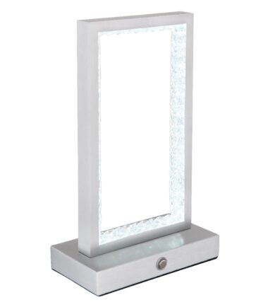 Stona lamapa serije SAMEGA je savršena kombinacija modernog dizajna i inovativne tehnologije. Sa svojom pravougaonom osnovom i ravnim diskom, postavlja stilske akcente u svakoj prostoriji. Telo lampe je izrađeno od mat aluminijuma, što joj daje elegantan izgled. Providni akrilni abažur obezbeđuje ravnomernu distribuciju svetlosti bez odsjaja. Lampa ima dimer na dodir, pomoću koga možete podesiti osvetljenje po želji. Proizvodi jačinu od 120 lm, opremljena je punjivom baterijom – baterija se napuni za 4 sata preko USB kabla koji se dobija uz lampu.