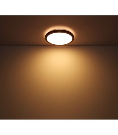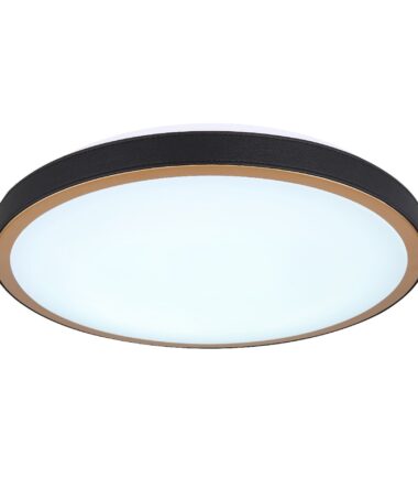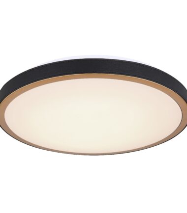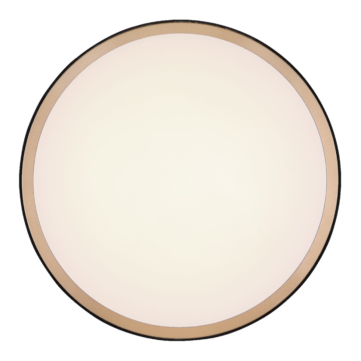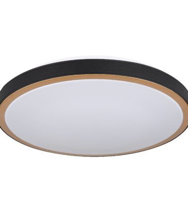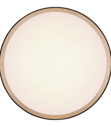 Ova okrugla plafonska lampa (Ø42cm) inspiriše svojim sjajnim dizajnom. U metalnom ramu se nalazi LED panel sa dodatnim prstenom u boji mesinga. On se može zatamniti i prilagoditi u rasponu od 3000 Kelvina toplo bela, 4500 Kelvina neutralna i 6000 Kelvina hladno bela.