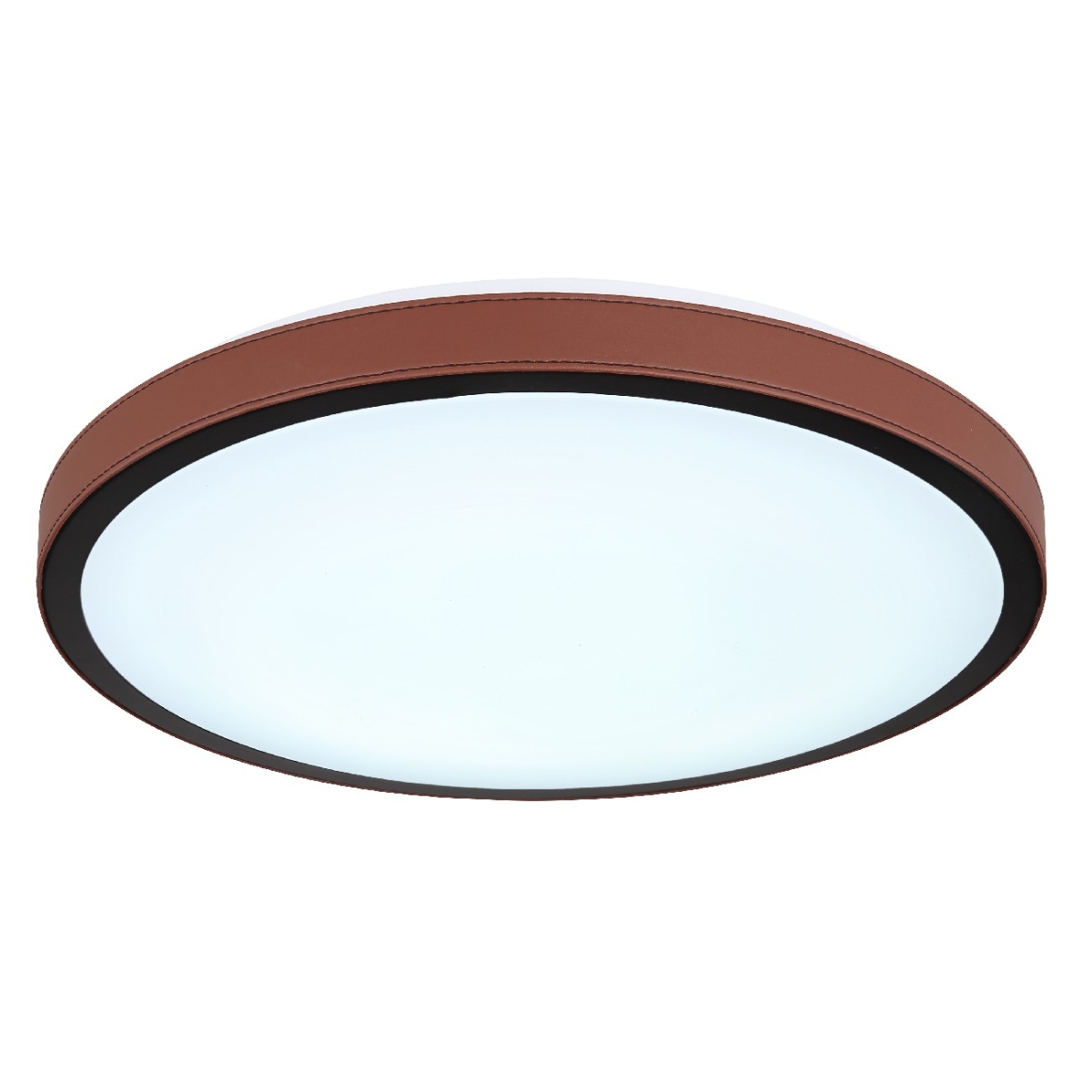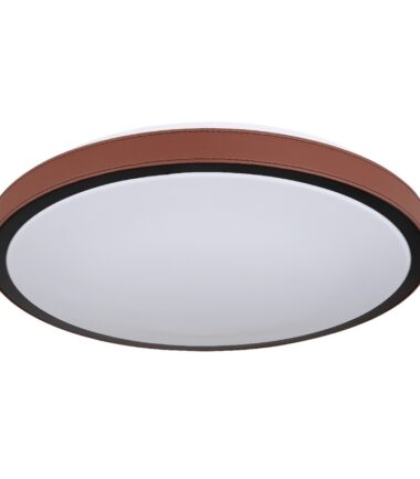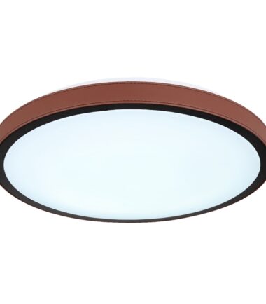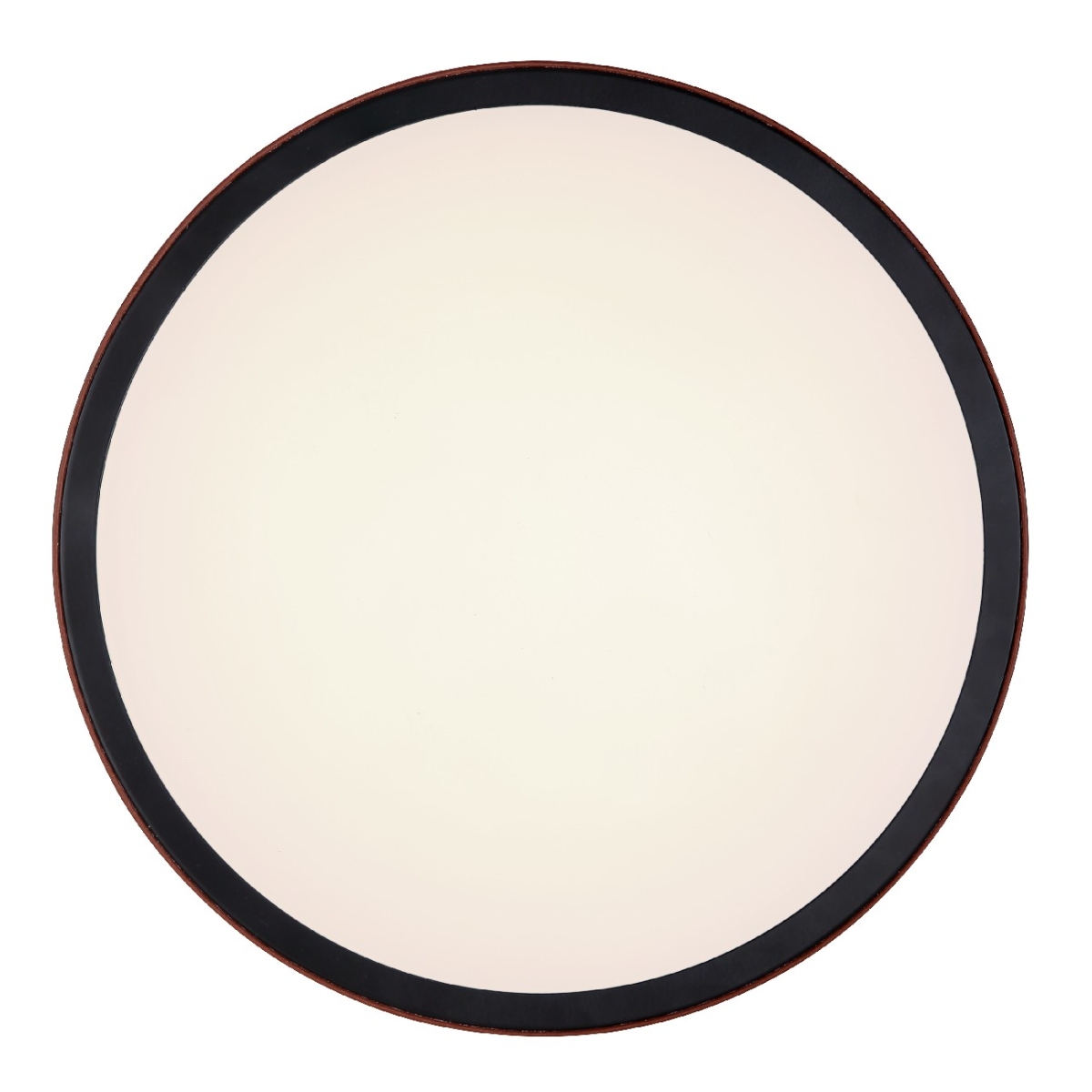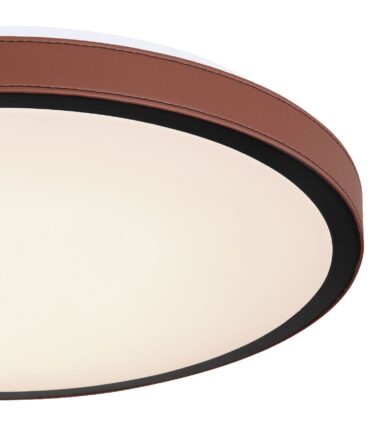 Ova okrugla plafonska lampa inspiriše svojom divnom šemom boja. Opalna plastika, koja pokriva uključene LED sijalice, zatvorena je okruglim spoljašnjim kućištem napravljenim od elegantnog tamno braon metala (Ø42cm). Uz LED sijalice, plafonska svetlost obezbeđuje 1189 lumena jako svetlo 3000 Kelvina toplo bela, 4500 Kelvina neutralno i 6000 Kelvin hladno bela.