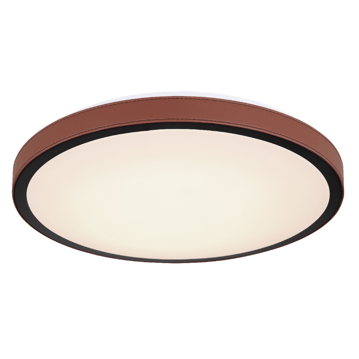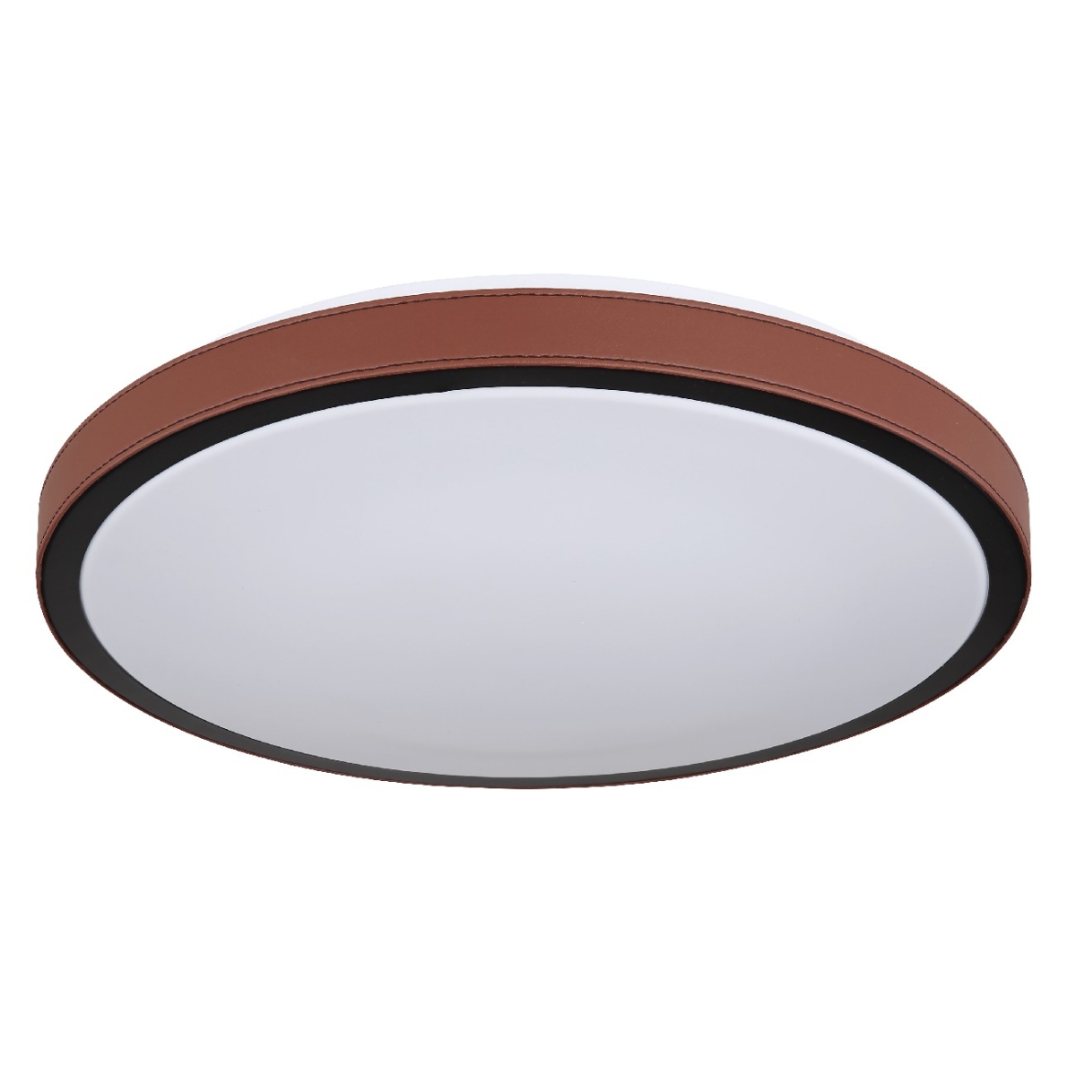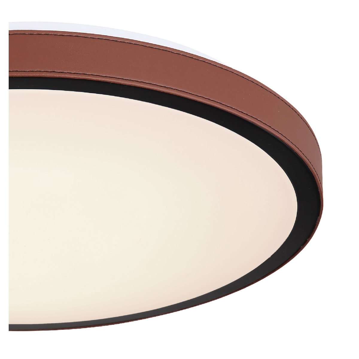 Ova okrugla plafonska lampa inspiriše svojom divnom šemom boja. Opalna plastika, koja pokriva uključene LED sijalice, zatvorena je okruglim spoljašnjim kućištem napravljenim od elegantnog tamno braon metala (Ø42cm). Uz LED sijalice, plafonska svetlost obezbeđuje 1189 lumena jako svetlo 3000 Kelvina toplo bela, 4500 Kelvina neutralno i 6000 Kelvin hladno bela.