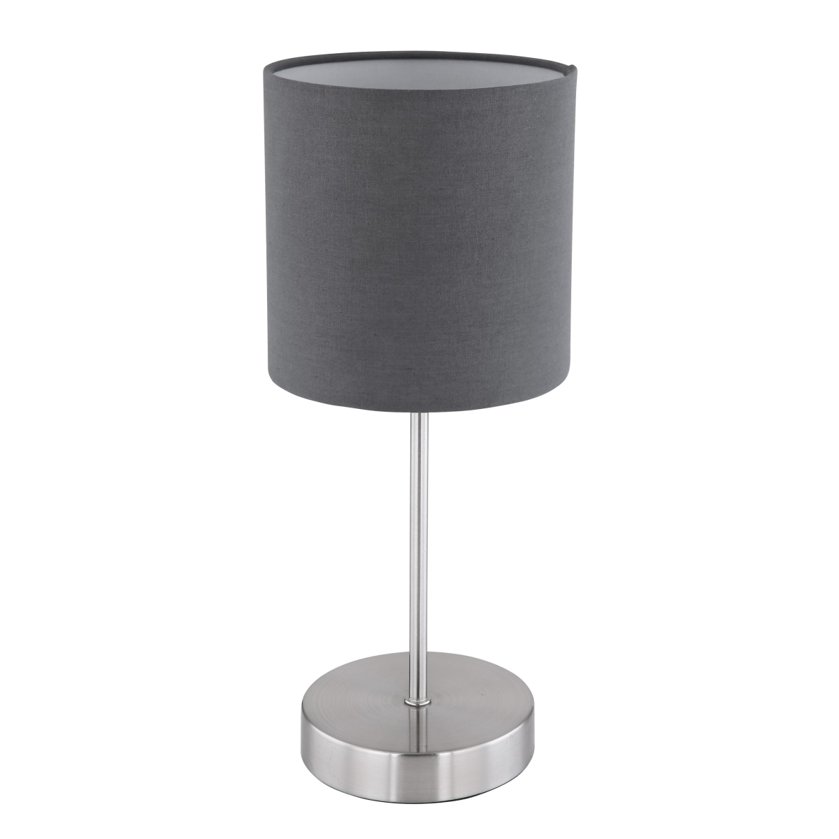 Ova moderna stona lampa iz serije SANNA (ø 15 cm) je divan dodatak vašem enterijeru. Nikl-mat metalna šipka stone lampe visine 35 cm obezbeđena je cilindričnim abažurom napravljenim od tekstila u boji antracita. Može biti opremljena E14 sijalicom po vašem izboru, što vam omogućava da odredite boju svetla i jačinu u skladu sa vašim idejama. Pored toga, stona lampa ima prekidač sa kojim se može zgodno uključiti i isključiti. Sa nekoliko modela iste serije možete upotpuniti celokupnu sliku u svoja četiri zida i obezbediti elegantan ambijent.