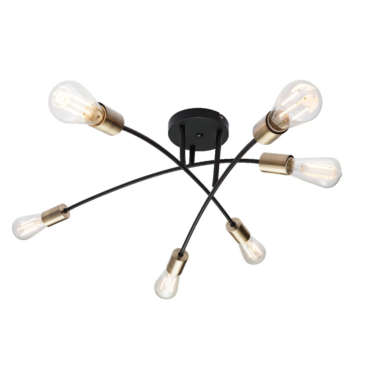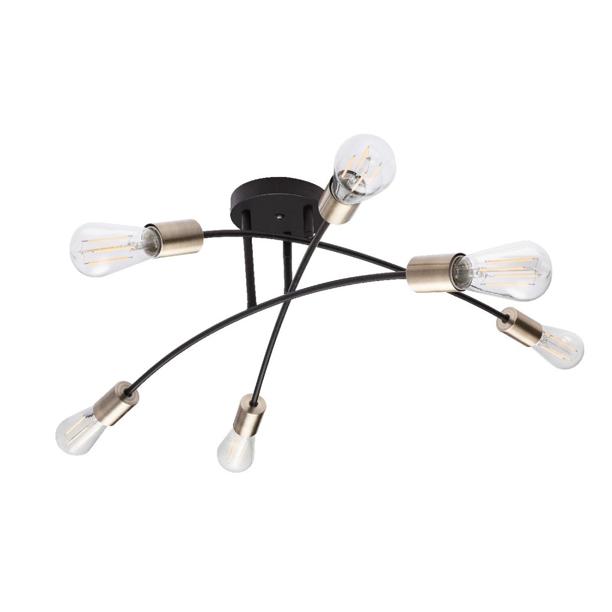 Ova elegantna plafonska lampa napravljena od crnog metala i mesinga starog izgleda sa tri zakrivljene grane je savršeng izgleda. Vanvremenski, ali moderni dizajn sa starinskim dodirom privlačiće pažnju u vašem životnom prostoru. Plafonska lampa prečnika 70 cm ima šest grla E14, koja vam omogućavaju da slobodno odaberete sijalicu (max. 60W). Zbog njihove trajnosti i uštede energije preporučujemo LED sijalice. Ostale stavke iz ove serije pružiće vam skladno životno iskustvo.