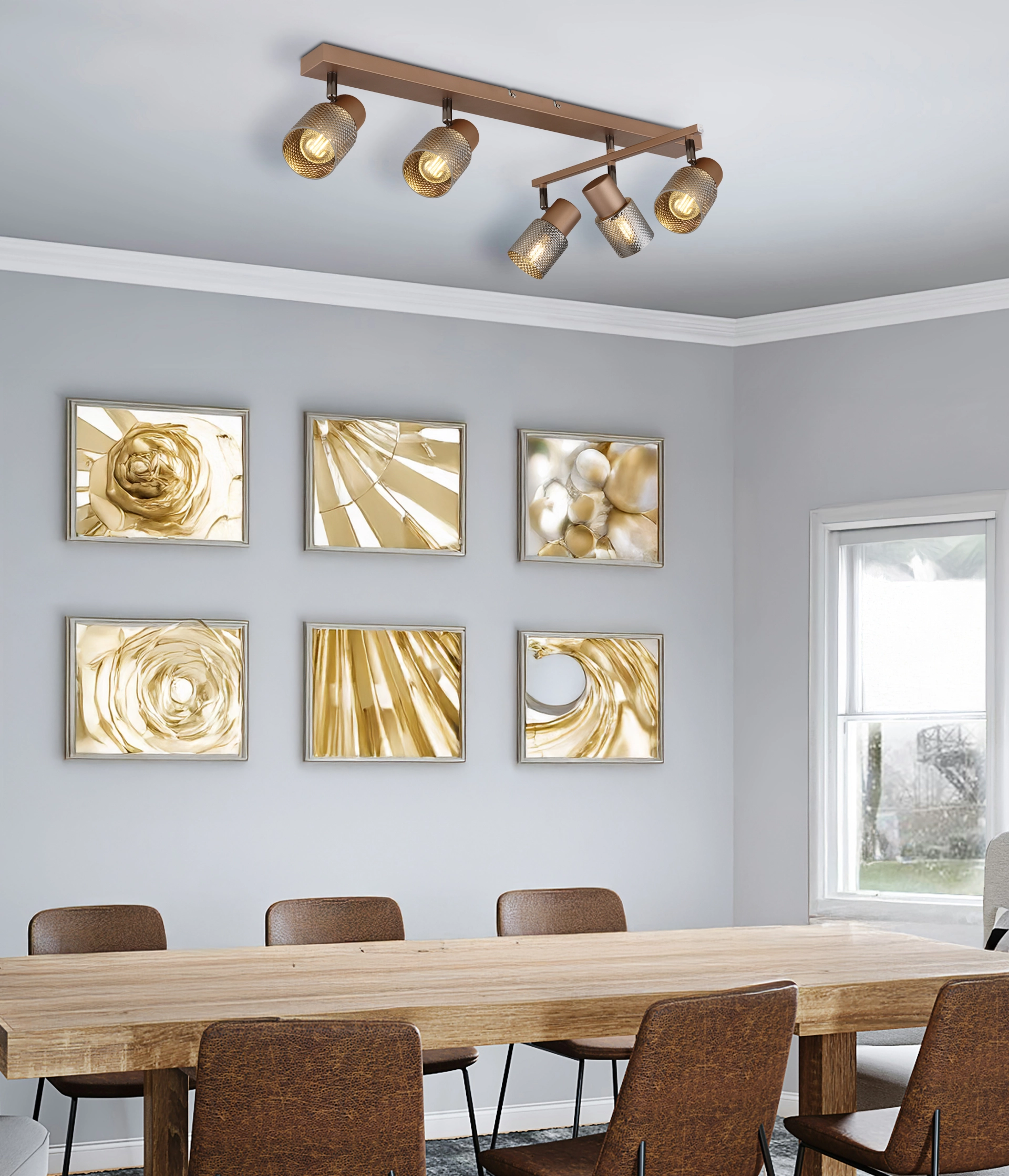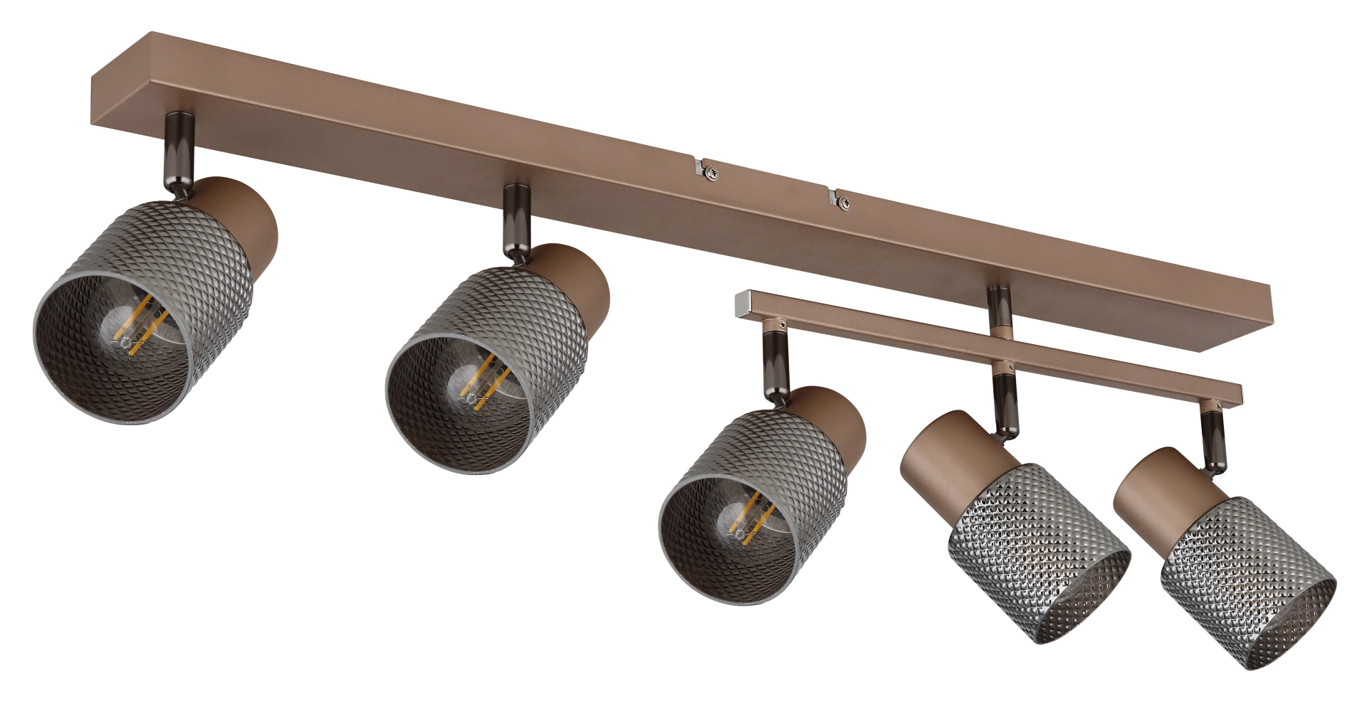 Reflektor SATELLA impresionira svojim pravougaonim dizajnom sa ukupno pet cilindričnih abažura u kristalnoj optici, koji pružaju glamuroznu difuziju svetlosti. Ovaj izduženi reflektor ima rotirajuću i okretnu funkciju koja omogućava individualno usmeravanje svetlosti i ciljano osvetljavanje različitih područja. Telo reflektora je napravljeno od mat metala boje kafe sa elegantnim detaljima u crnom hromu, što mu daje plemenit izgled. Abažuri su napravljeni od mat metala boje kafe i dimljenog stakla sa blistavim kristalnim efektom koji stvara ekskluzivnu atmosferu osvetljenja. SATELLA nije samo praktičan izvor svetlosti, već i dekorativni akcenat koji dodaje dašak luksuza svakoj prostoriji. Idealan za dnevnu sobu, trpezariju ili hodnik, ovaj reflektor postavlja stilske akcente i stvara privlačnu atmosferu.