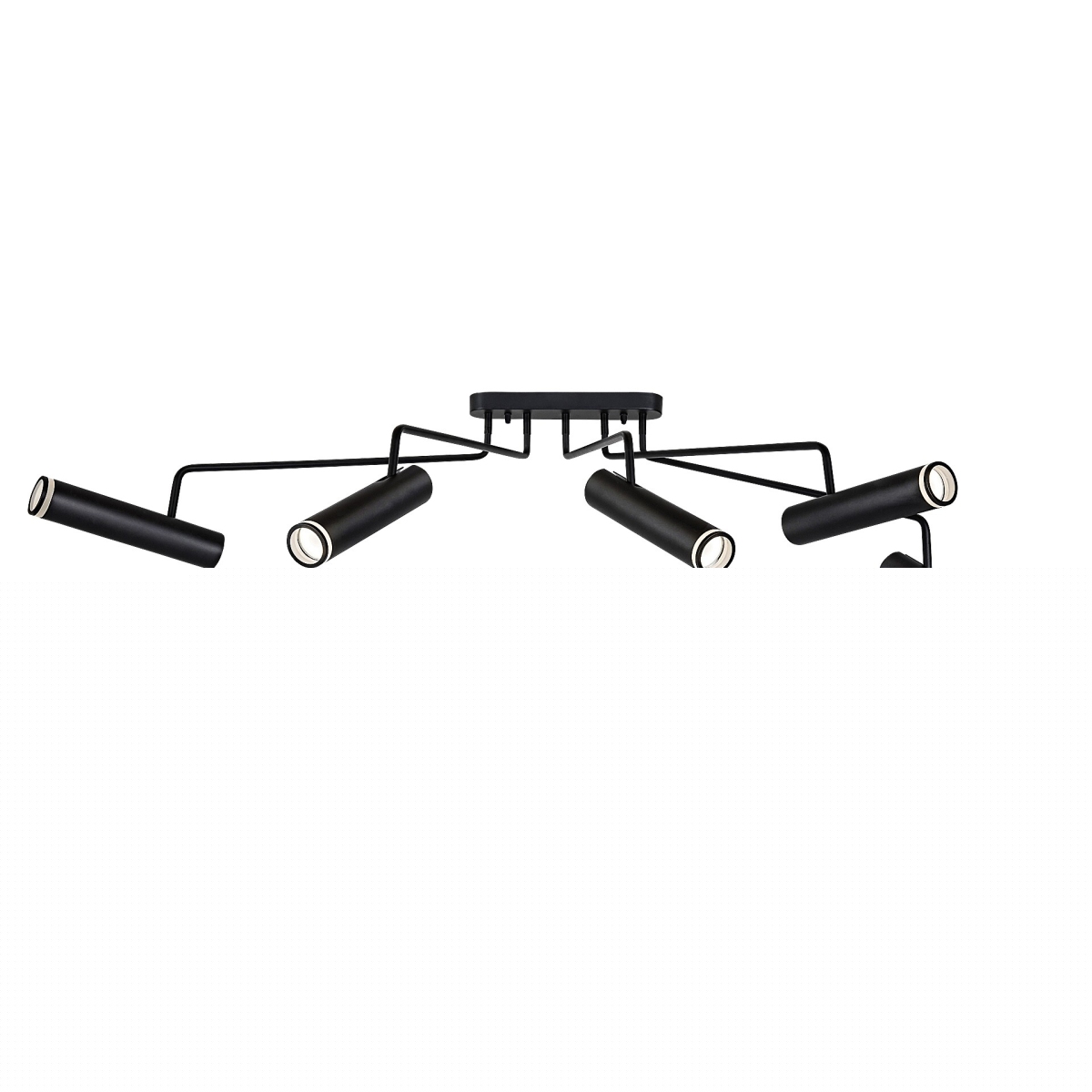 Moderna Senobia plafonska lampa sa 5 sijalica može biti odlučujući deo nameštaja vaše dnevne sobe, spavaće sobe ili radne sobe. Lampa je izrađena od aluminijuma u crnoj boji i može se pričvrstiti na plafon uz pomoć izduženog ukrasnog postolja. Cilindrične glave sijalica malog prečnika postavljene su na krajevima krakova pričvršćenih za dekorativnu osnovu i upotpunjene su belim akrilnim abažurima. Svaka od ruku koja drži glave lampe okrenuta je u drugom pravcu i ugao glava lampe može se podesiti između 90–180°, tako da možete usmeriti njihovu svetlost po želji. Zbog svoje veličine i dizajna, Senobia nudi efikasno osvetljenje čak i u prostranijoj prostoriji. Ova lampa se može koristiti sa pet sijalica, svaka snage do 35 V. Tip grla je GU10. Dimenzije Senobia su sledeće: širina 1.300 mm, prečnik svakog abažura 55 mm, njihova dužina 150 mm, rastojanje lampe od plafona 500 mm, prečnik ugradnje 330 mm. Plafonska lampa Senobia sa 5 sijalica se isporučuje bez izvora svetlosti.