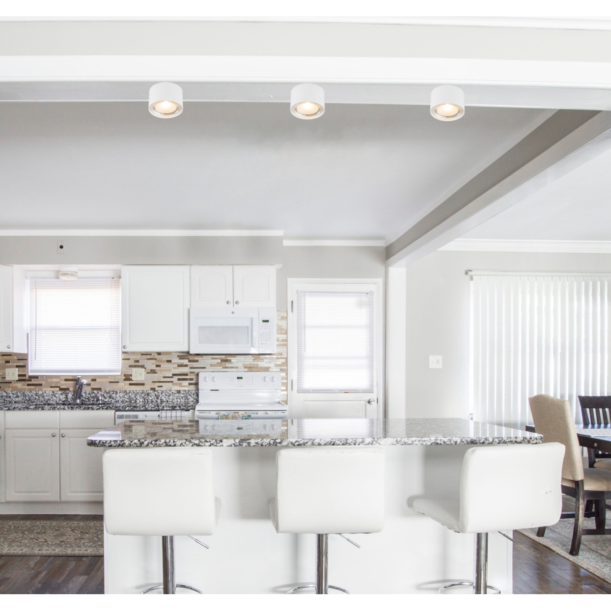 Ova karakteristična plafonska lampa savršeno se uklapa sa modernim stilovima života zbog svog jednostavnog dizajna. Sa prečnikom od 11,3cm, idealan je za montažu na elemente udaljenog plafona. Aranžman od nekoliko svetiljki je posebno harmoničan. Metalni cilindar je ofarban u mat belo i sa delimično satiniranim gotovim staklom. Integrisani LED od 12W proizvodi 980lm tople bele svetlosti.