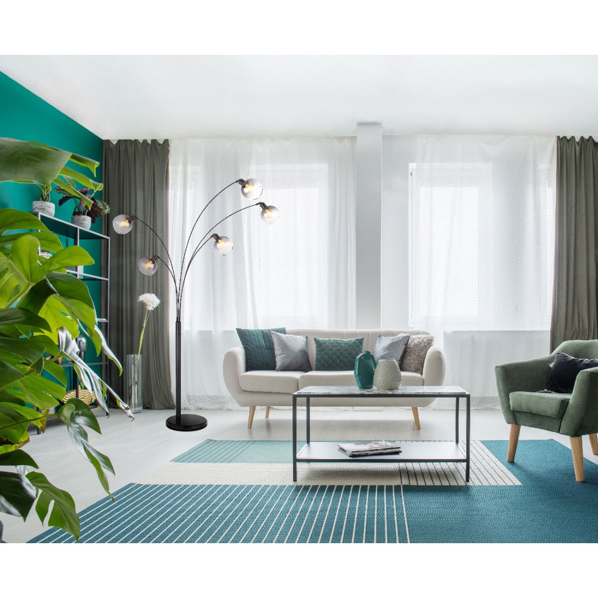 Elegantna i moderna, to je ono što ova divna crna mat podna lampa iz serije SEYMOUR kombinuje sa mermernom podlogom i visinom od 208 cm. Pet E27 grla obloženo je staklenim abažurima u boji dima i E27 grla vam daju slobodu da sami odlučite koju sijalicu (max. 40W) želite da koristite, a samim tim i lagani intenzitet i laganu boju.