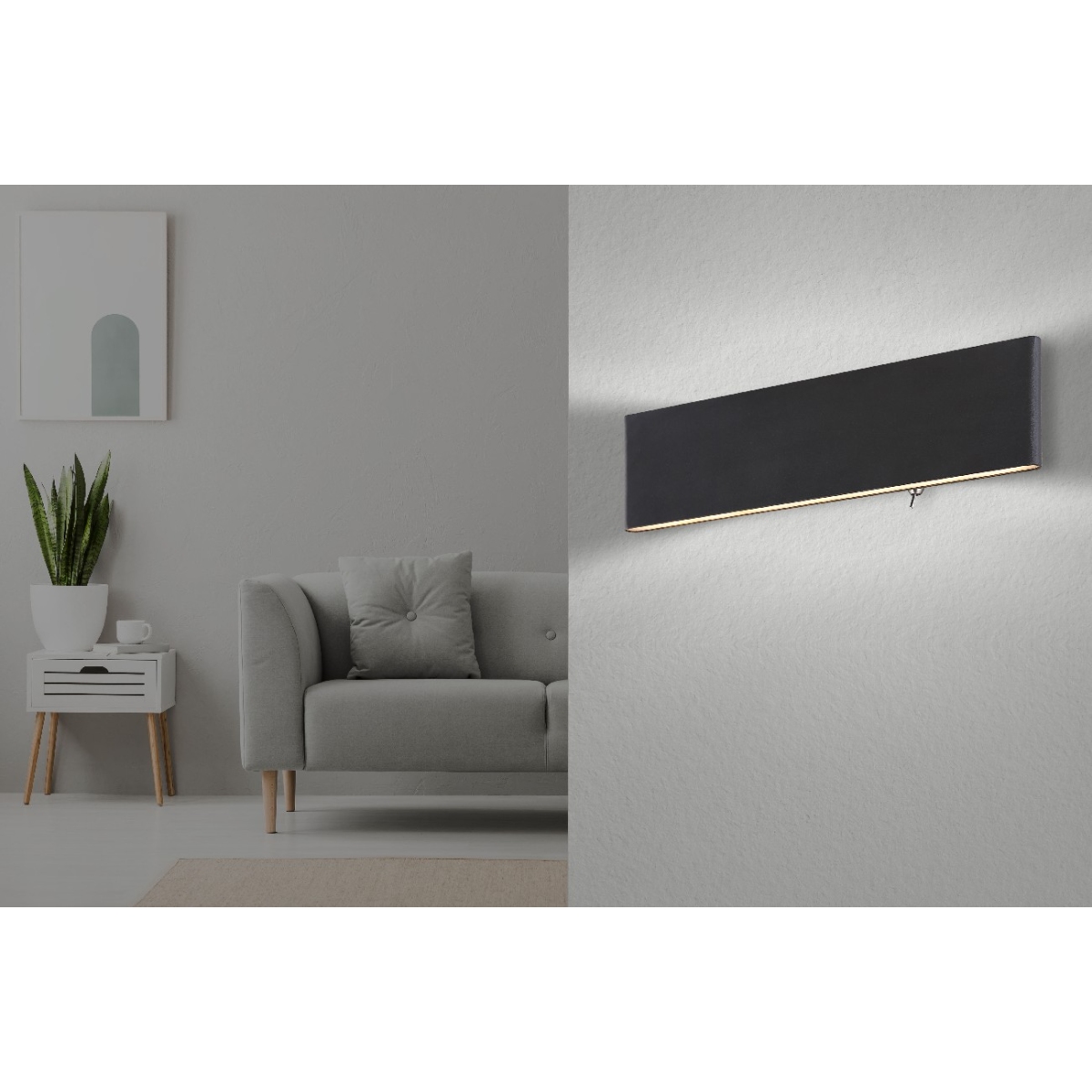 Ova moderna zidna lampa sa imenom SIEGFRIED poentira svojim dizajnom i radom. Napravljena od crnog aluminijuma i crnog akrila (L = 29,5cm), ova lampa je svestrana. Standardna LED sijalica obezbeđuje 380 lumen jakog svetla i ima toplo belu (3000K) boju svetla. Obasjava gore-dole.