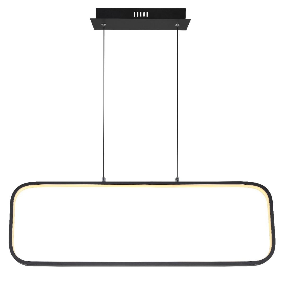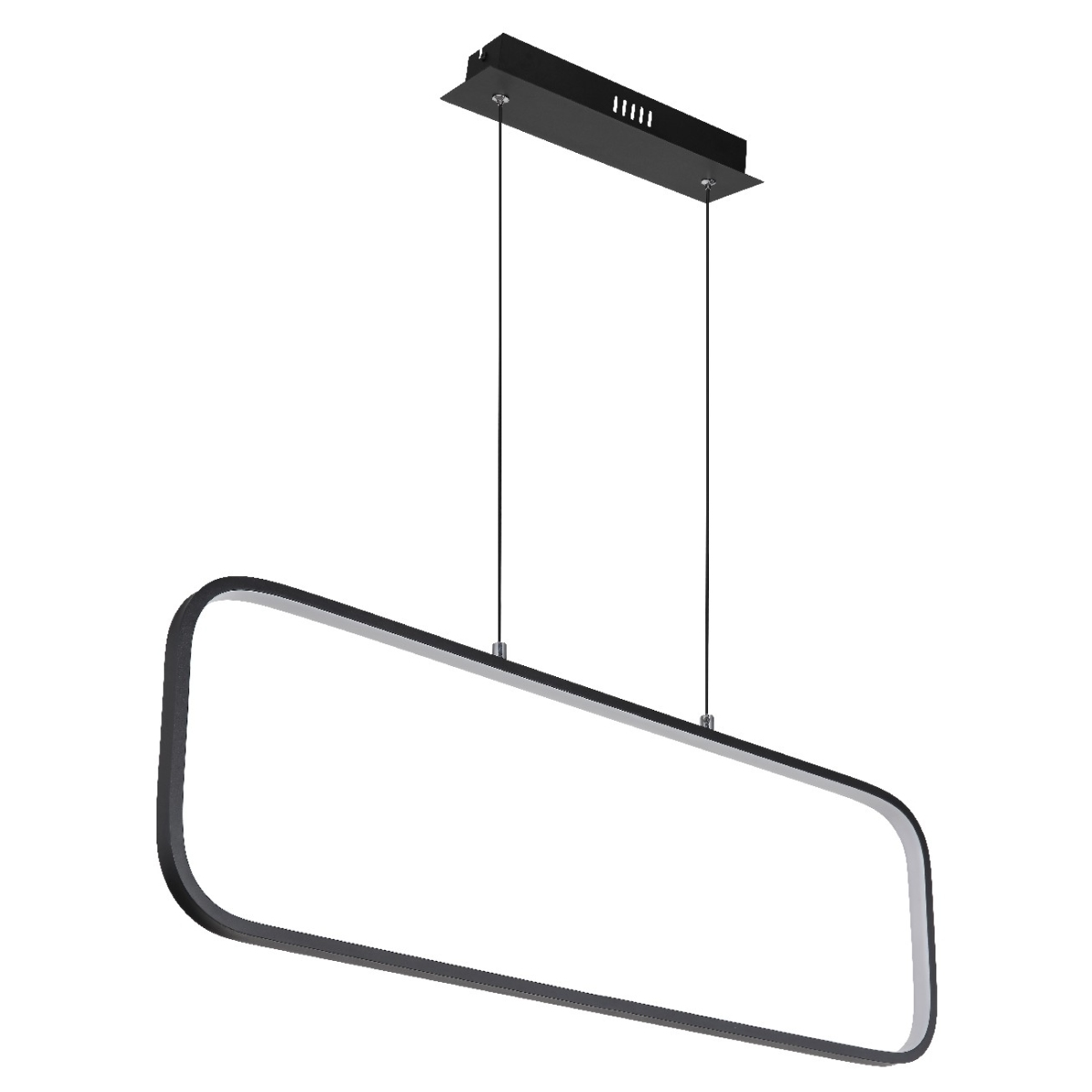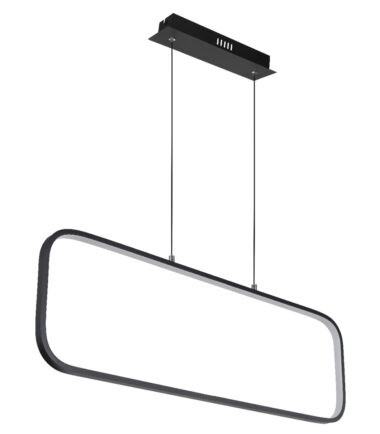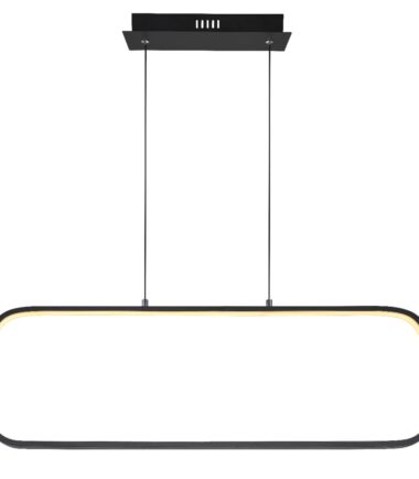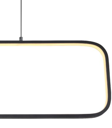 Ova izuzetno moderna visilica (80x10cm) serije SILLA impresionira svojim prelepim dizajnom. Od crne mat pravougaone zidne osnove spustaju se dva crna kabla maksimalne visine od 1,2 metra do oblikovanog pravougaonog crnog mat rama sa integrisanom LED sijalicom koja prijatno sija 3000 Kelvina topla bela svetlost i tako vašim sobama nudi odličnu atmosferu.