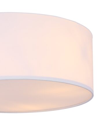 Ova plafonska lampa SIMONE ponovo oživljava retro dizajn. Bela, 16,5cm visoka plafonska lampa sa belim tekstilnim abažurom (Ø 40cm) ima tri E27 grla, što vam ostavlja izbor izvora svetlosti a samim tim i intenzitet svetlosti (max. 40 vati) i boju svetla. Sa drugim modelima ove serije možete da dovršite sliku u svojim prostorijama.