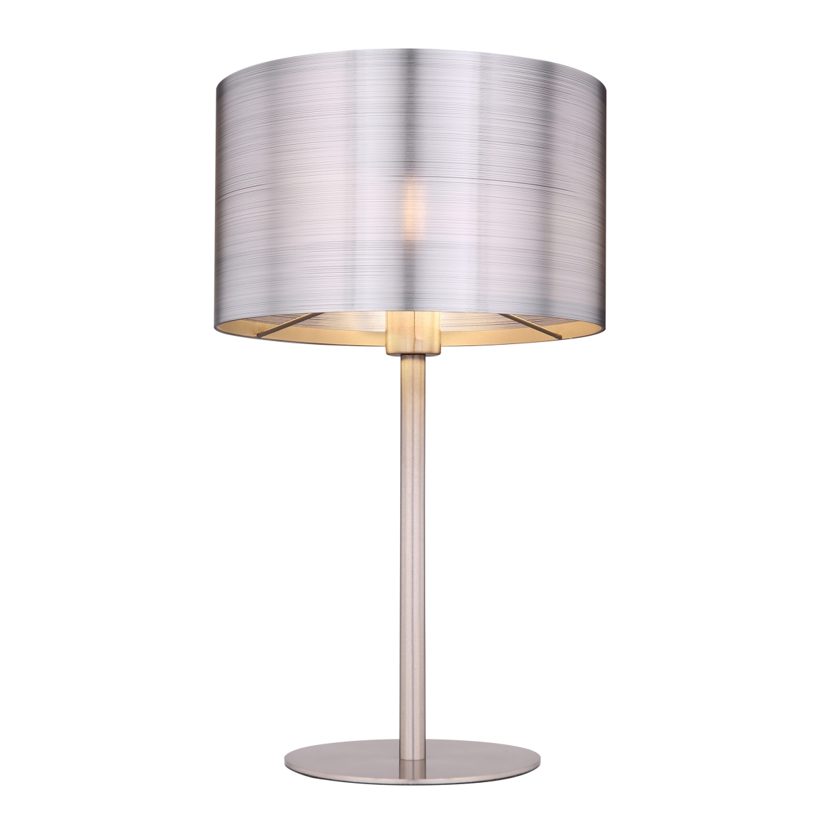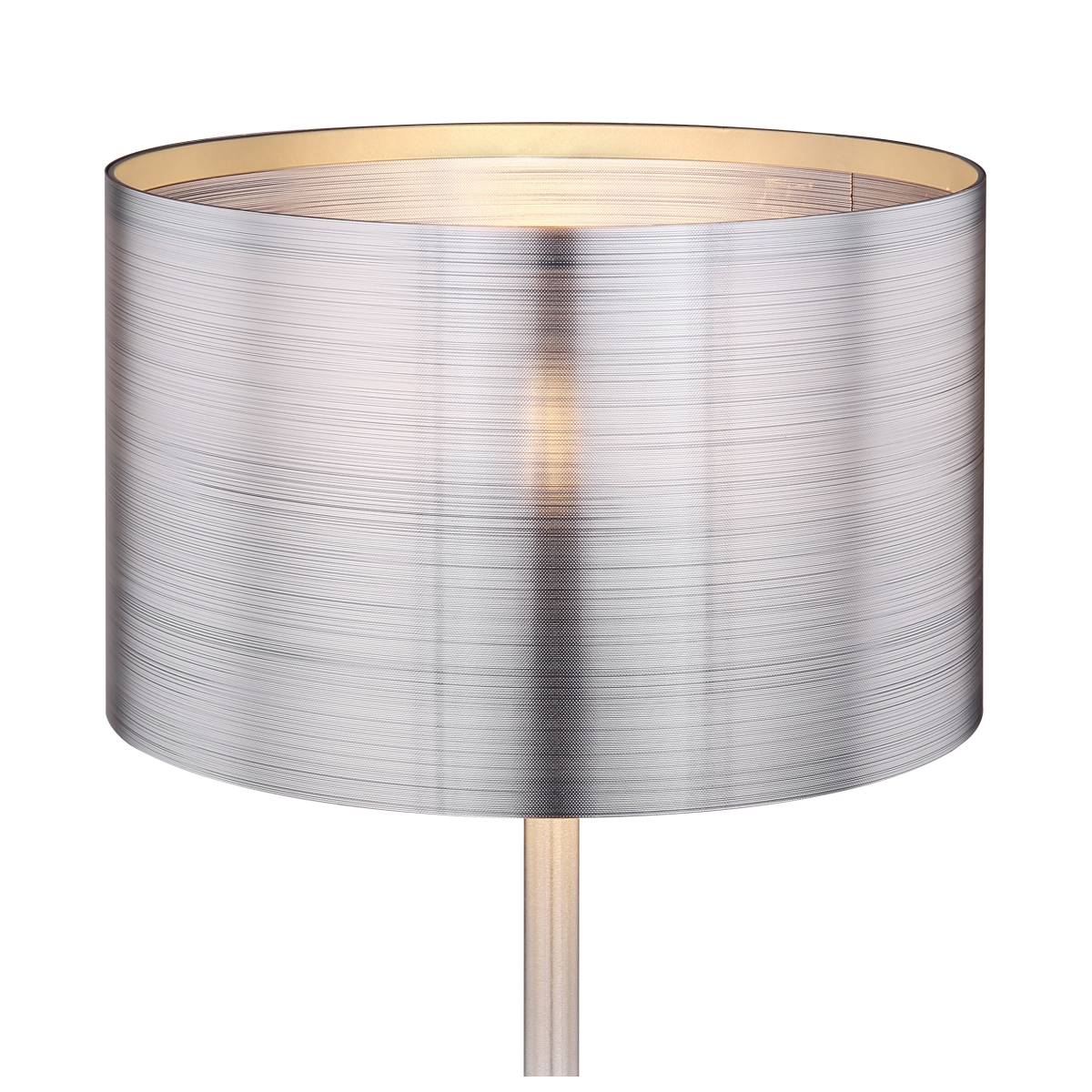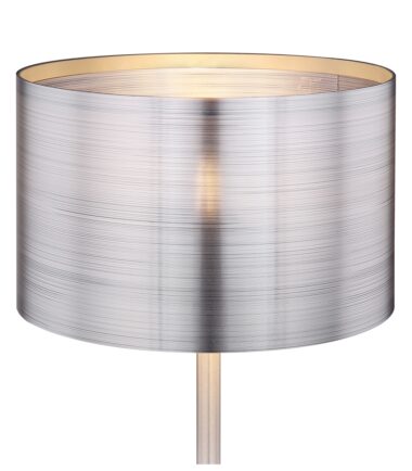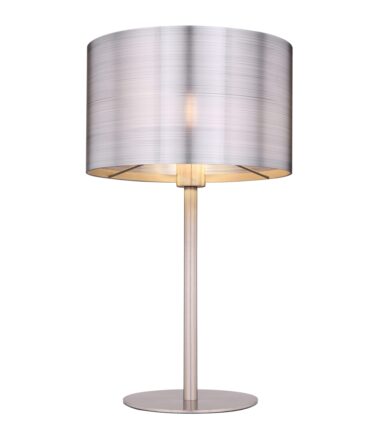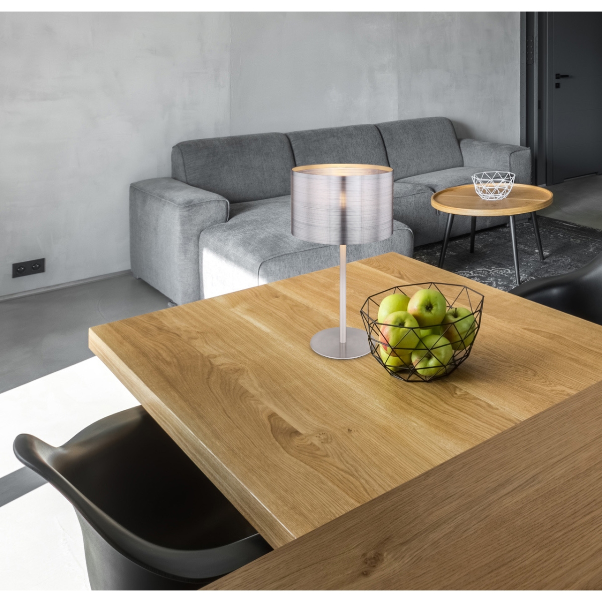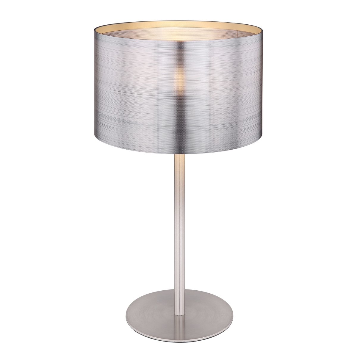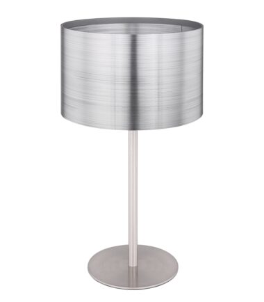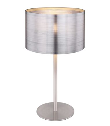 Ova elegantna, stona lampa (Ø 23 cm) SINNI ističe se svojim dizajnom. Zbog prelepog srebrnog metalik plastičnog abažura, svetlo je posebno akcentovano. Grlo E14 omogućava slobodan izbor sijalica (max. 40 vati). Pored toga, ova lampa ima prekidač.