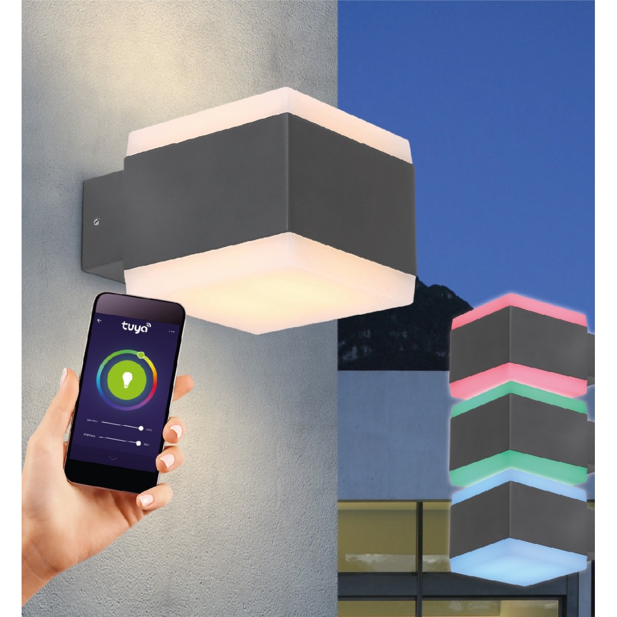 Ova klasična spoljašnja lampa SLICE (11 x 9 cm) napravljena je od aluminijuma u boji antracita sa opal-belim plastičnim i staklenim rezovima sa performansama i funkcionalnošću. Zahvaljujući integrisanoj RGB 15W LED sijalici, ova spoljna lampa omogućava vašoj sobi da sija u različitim bojama koje odgovaraju raspoloženju. Ova lampa sa mogućnošću zatamnjivanja ima maksimalni izlaz od 650 lumena. Željena svetlosna boja se može promeniti i fiksirati od tople bele 3000 Kelvina do hladno bele 6500 Kelvina. Ova zidna lampa, koja osvetljava naviše ili nadole, idealno je pogodna za upotrebu na otvorenom zahvaljujući svom IP44 stepenu zaštite. Ova Smartlight lampa je jednostavna za rad pomoću Tuya Smart aplikacije (Android TM/IOS). Kontrola glasa je laka sa Amazon Echo Tm i Google Home.
