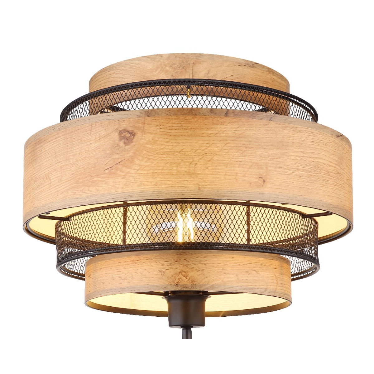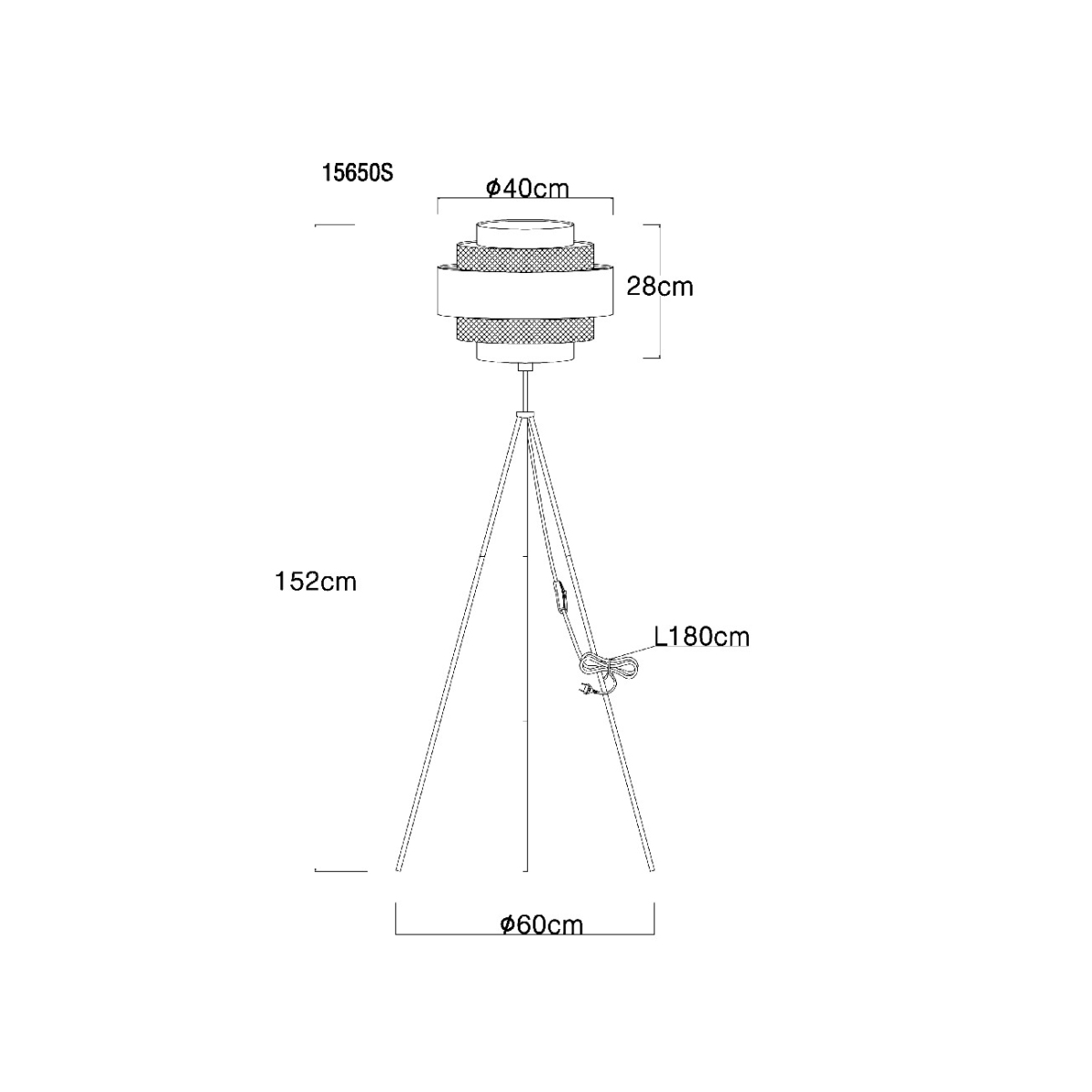 Ova sjajna podna lampa inspiriše svojim jednostavnim dizajnom. Grlo E27 prodire iz crnog mat metalnog tronožaca na visini od 1,5 metara. Grlo E27 opremljeno je prelepim abažurom napravljenim od metalnih rešetki i ukrasa nalik drvetu (Ø60cm). Slobodan izbor sijalice, omogućava vam da odredite boju svetla i jačinu do maksimalnog izlaza od 40 vati.